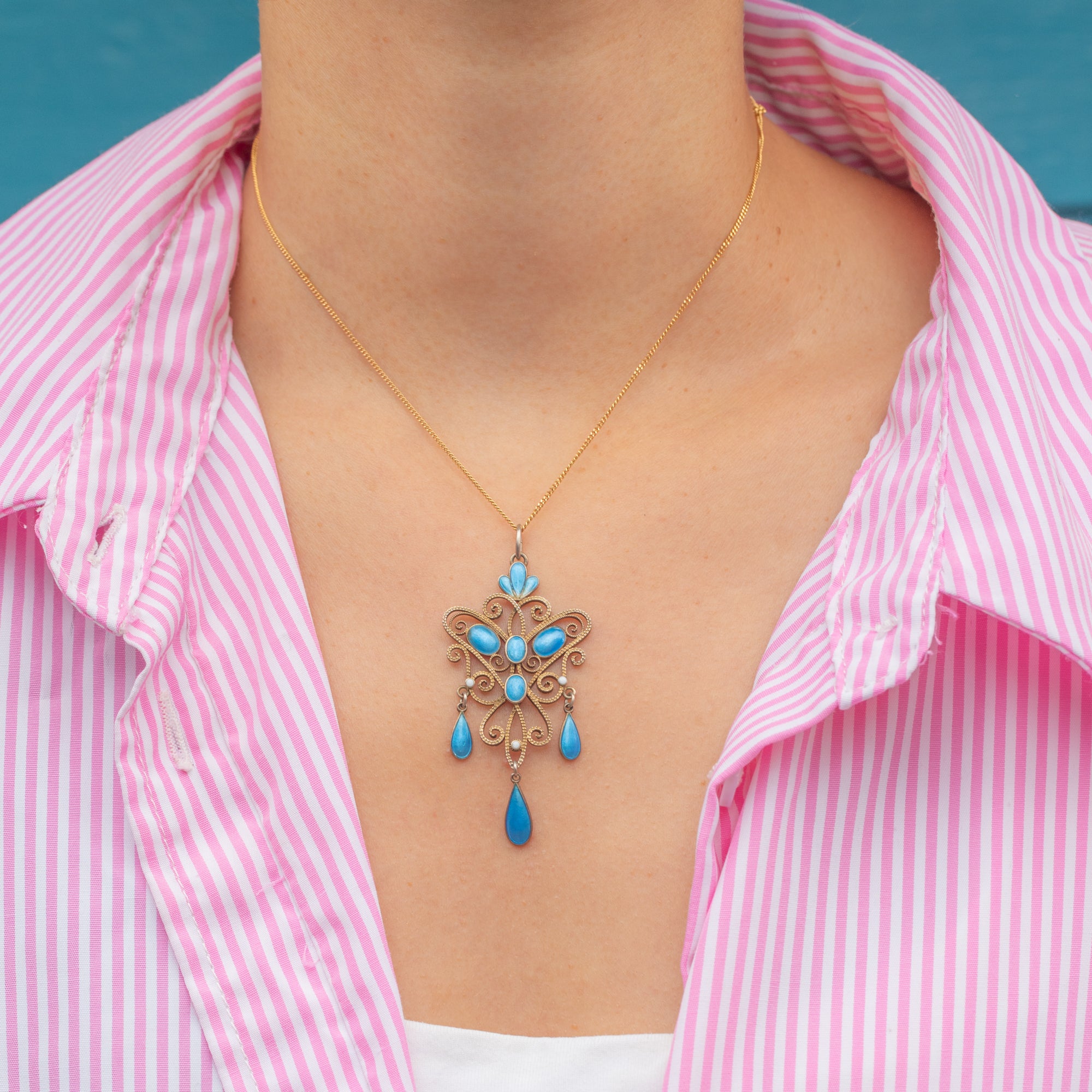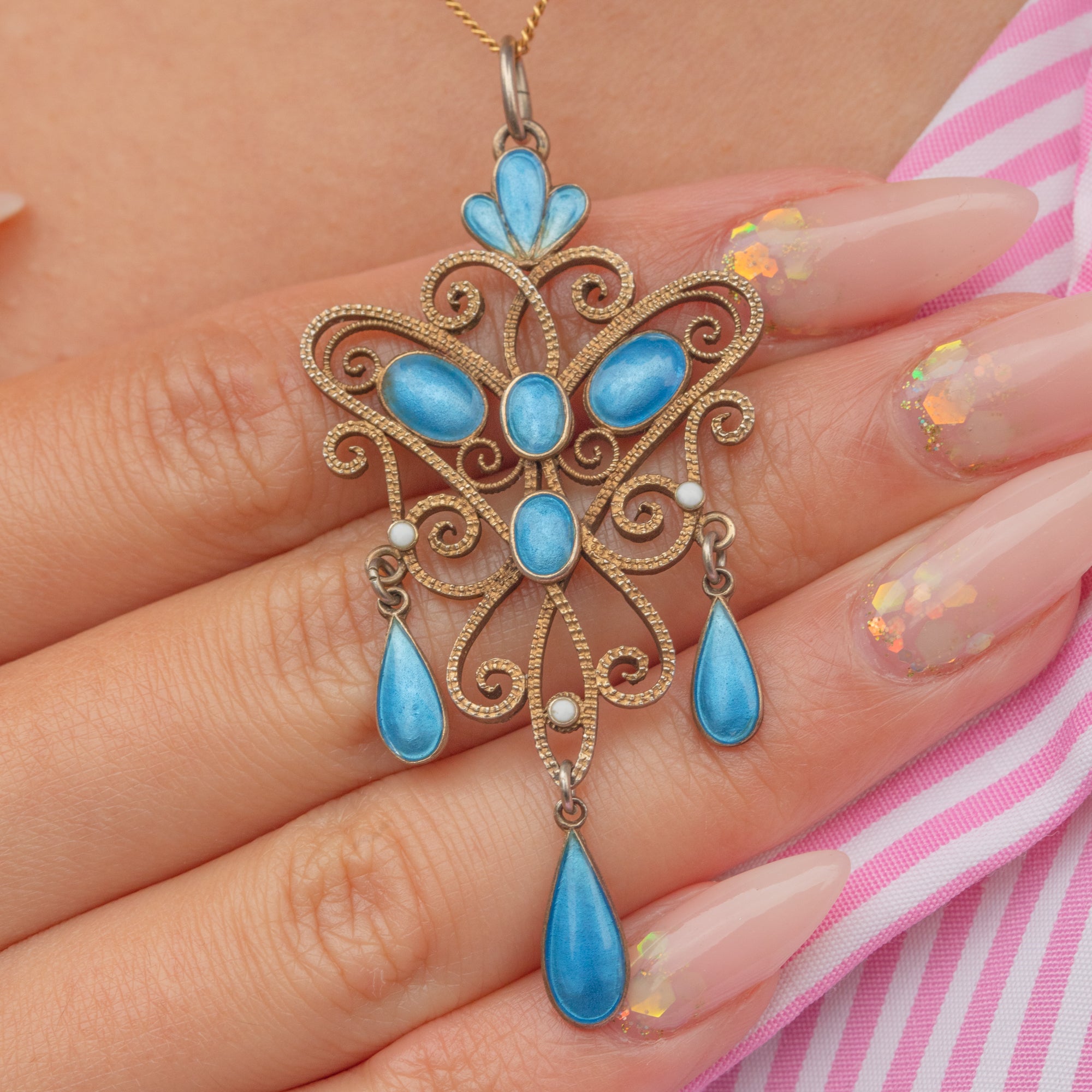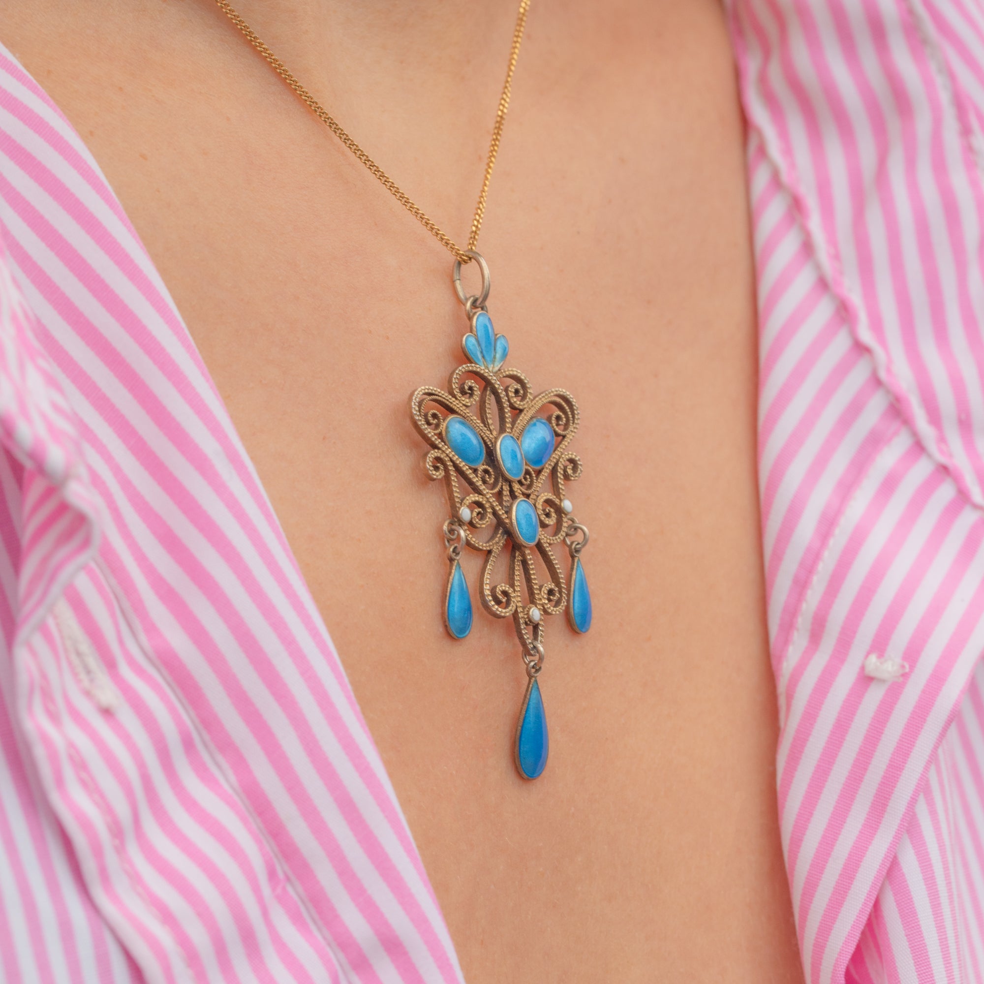 EXCELLENT: The enamel is beautifully preserved, with vibrant colour and only the most minimal signs of wear. The Silver gilt retains its rich tone, and the pendant remains secure and ready to wear.