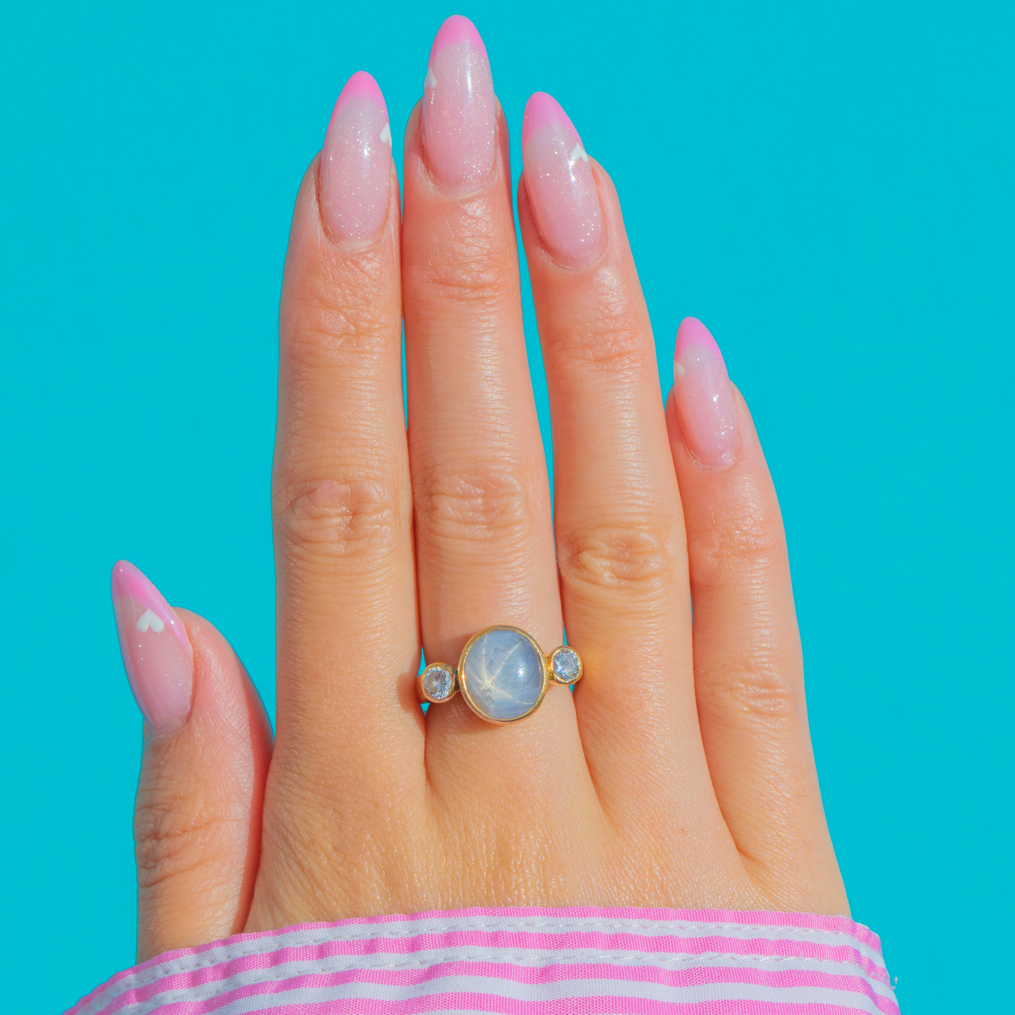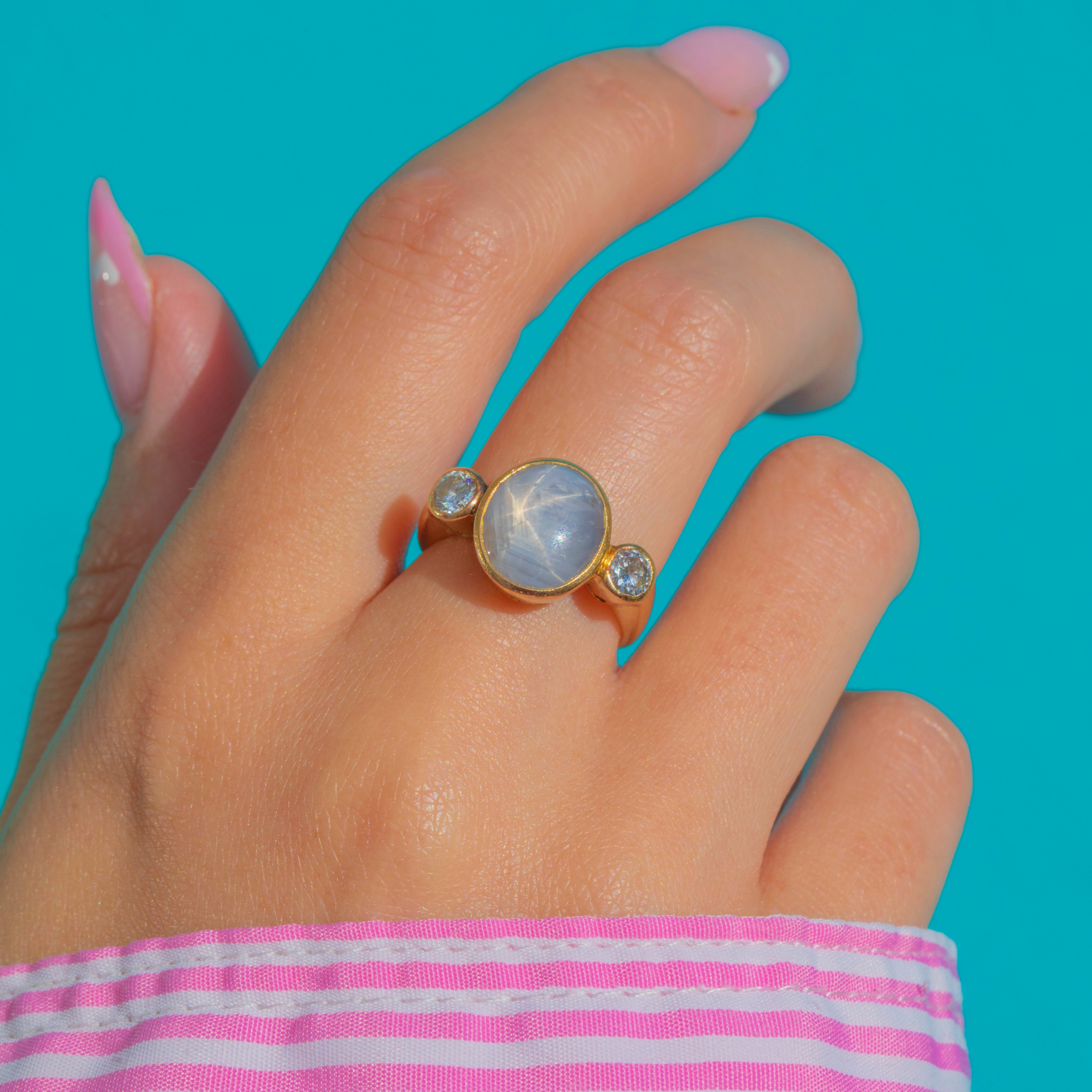 3.20ct Natural Star Sapphire Diamond Ring in 18ct Gold