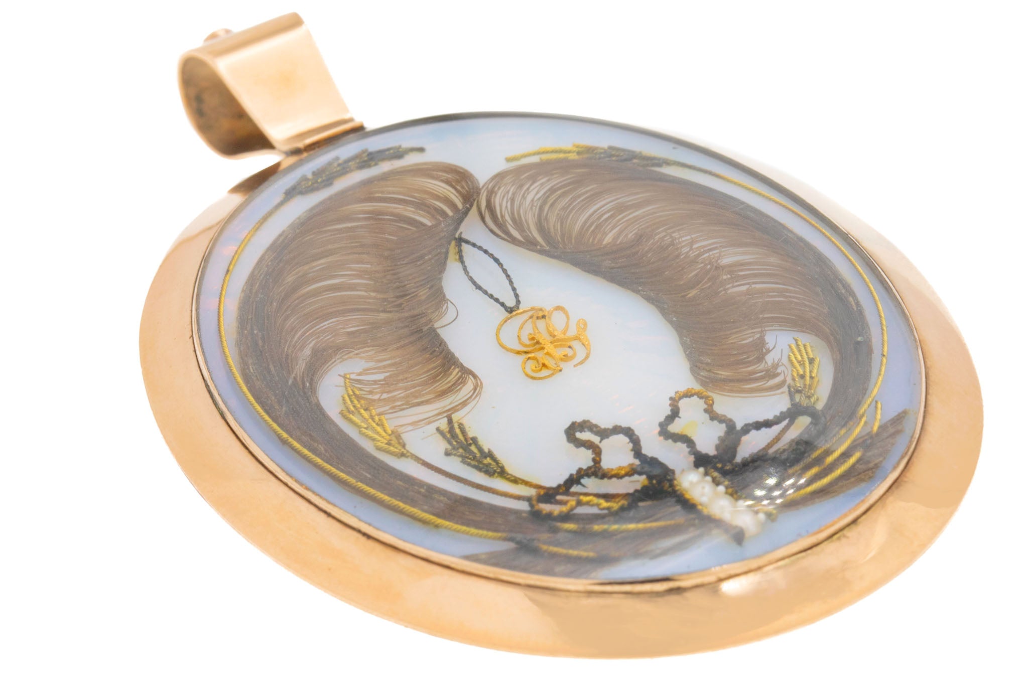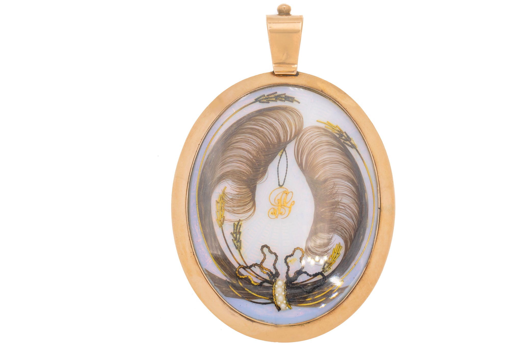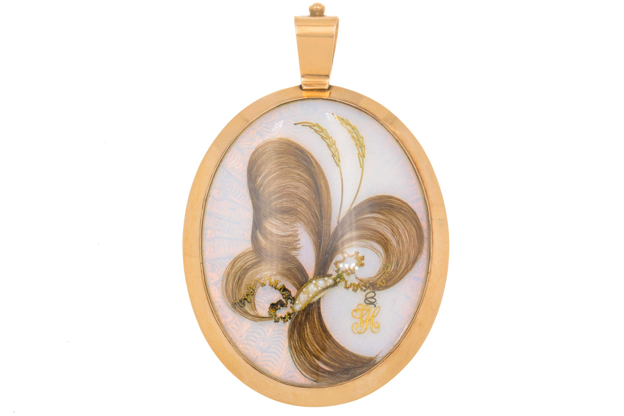MATERIALS: Tests as 9ct Gold, Opaline, Hair work.