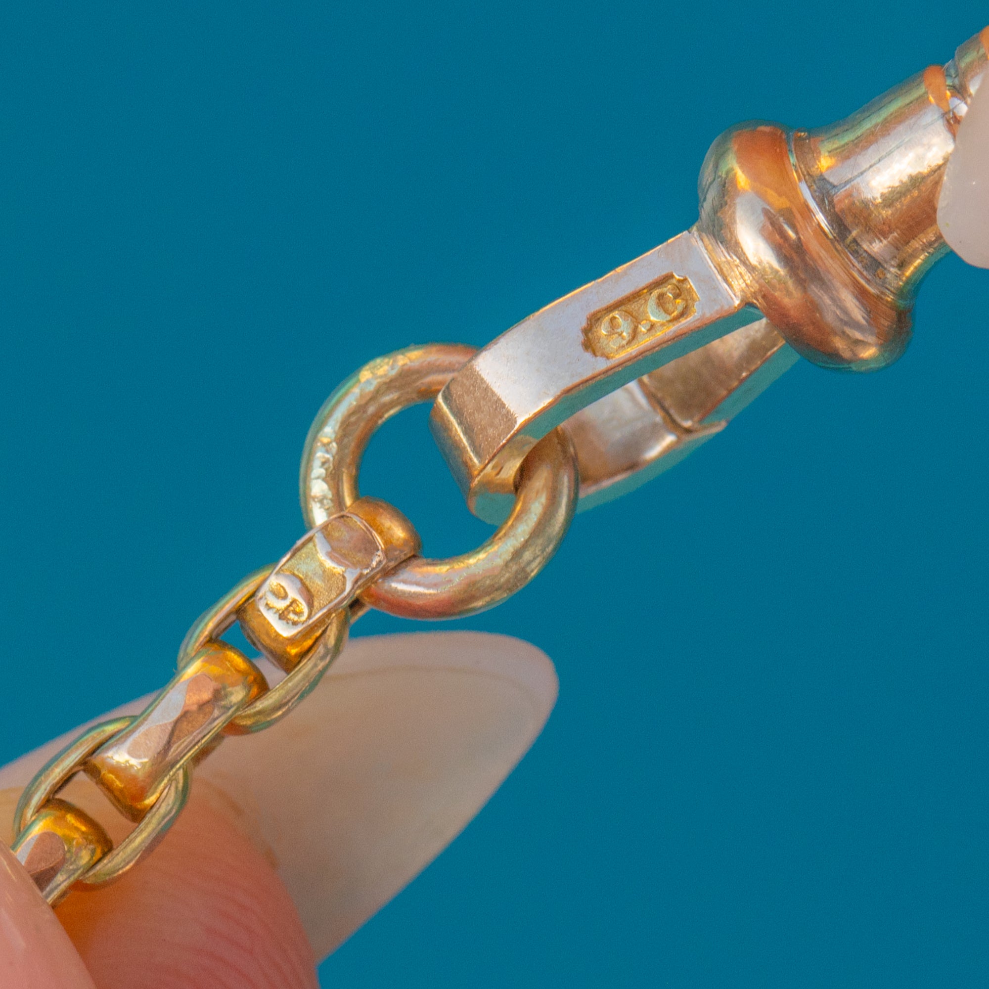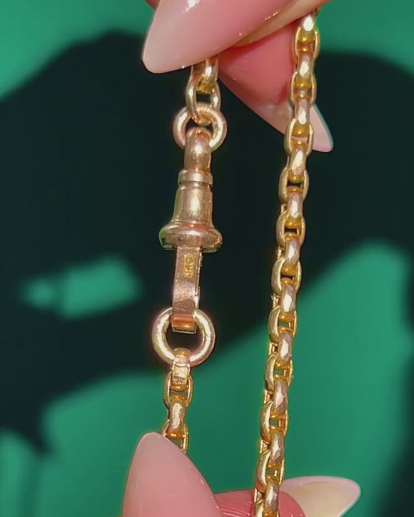 Rare Tagged 19" Antique 9ct Gold Chain with Dog-Clip Charm Holder