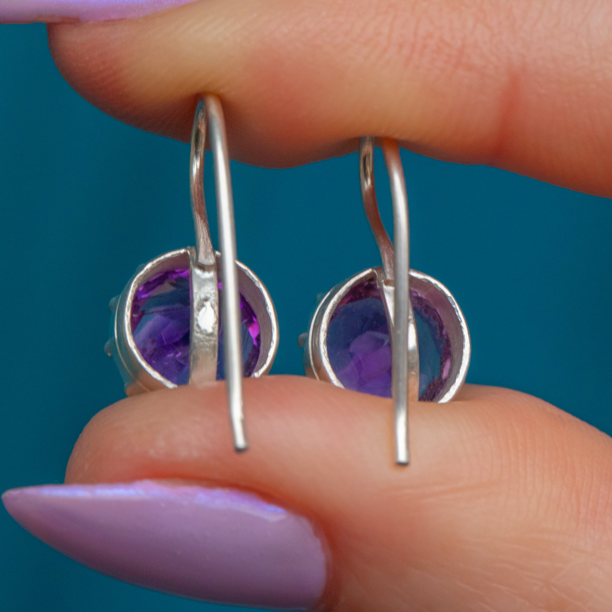 Amethyst are 8mm in diameter, weighing approx. 2.15ct combined.