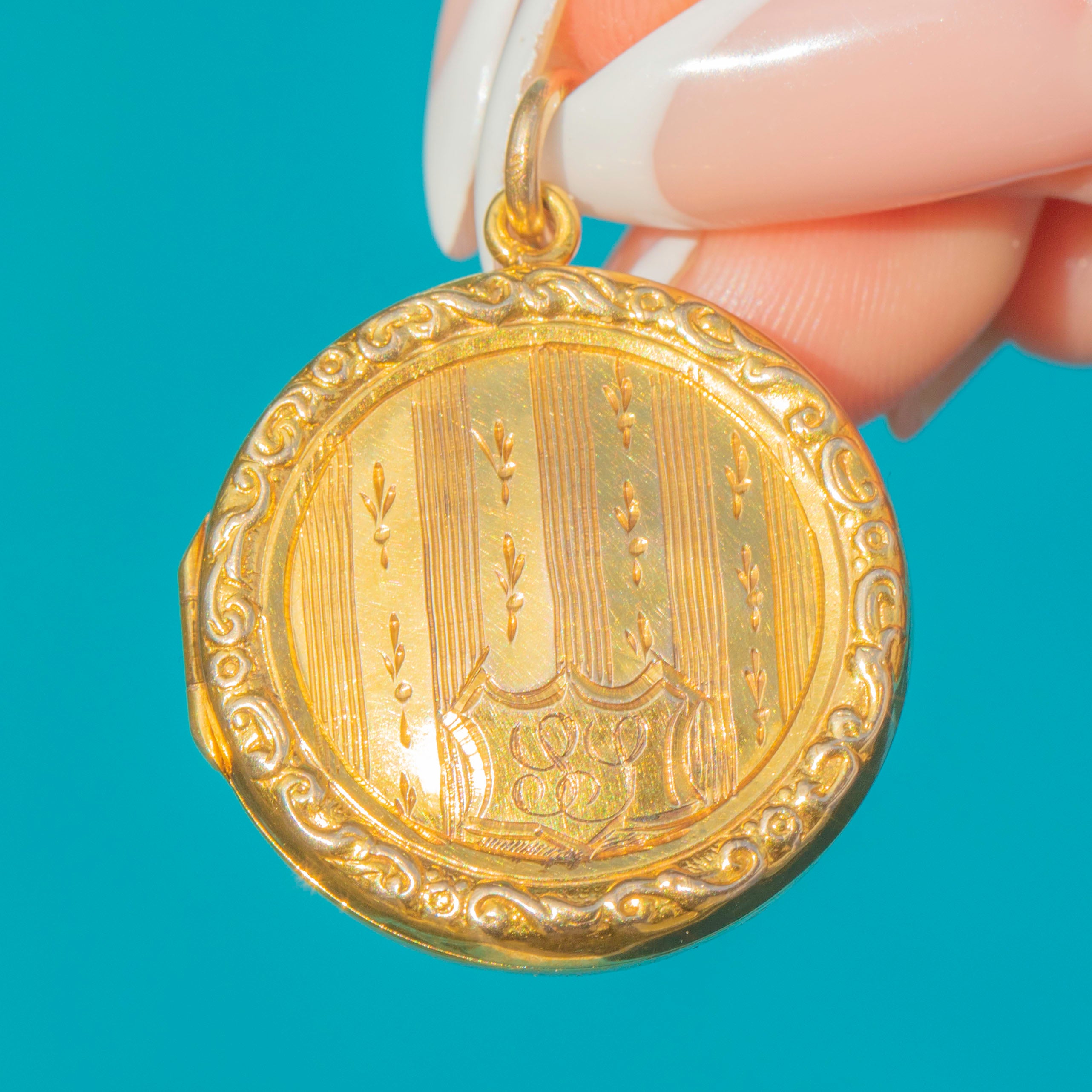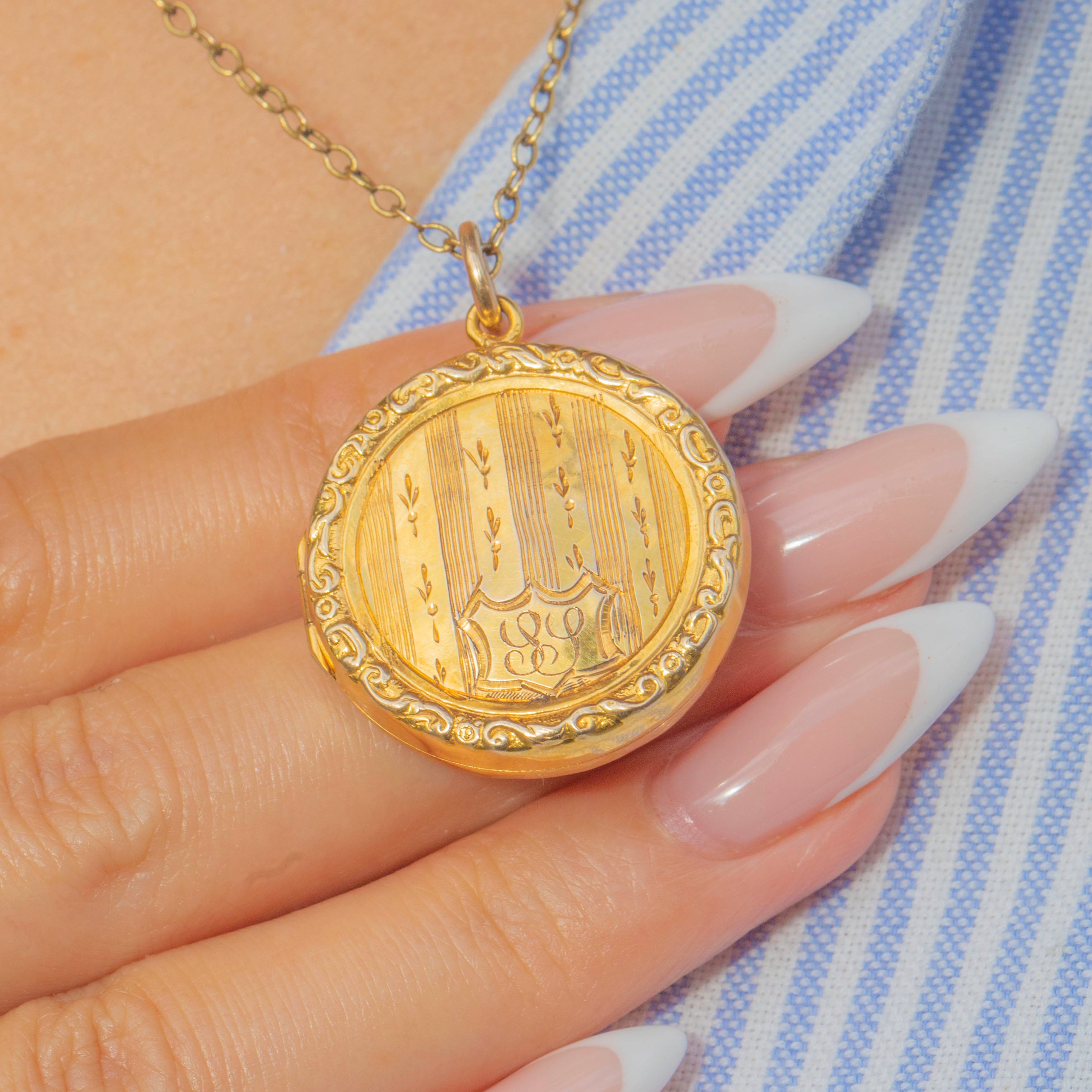 The interior retains one frame, ready to hold a treasured photograph or keepsake. With its warm Gold tone, decorative engraving, and substantial size, this locket is a wearable antique jewel.