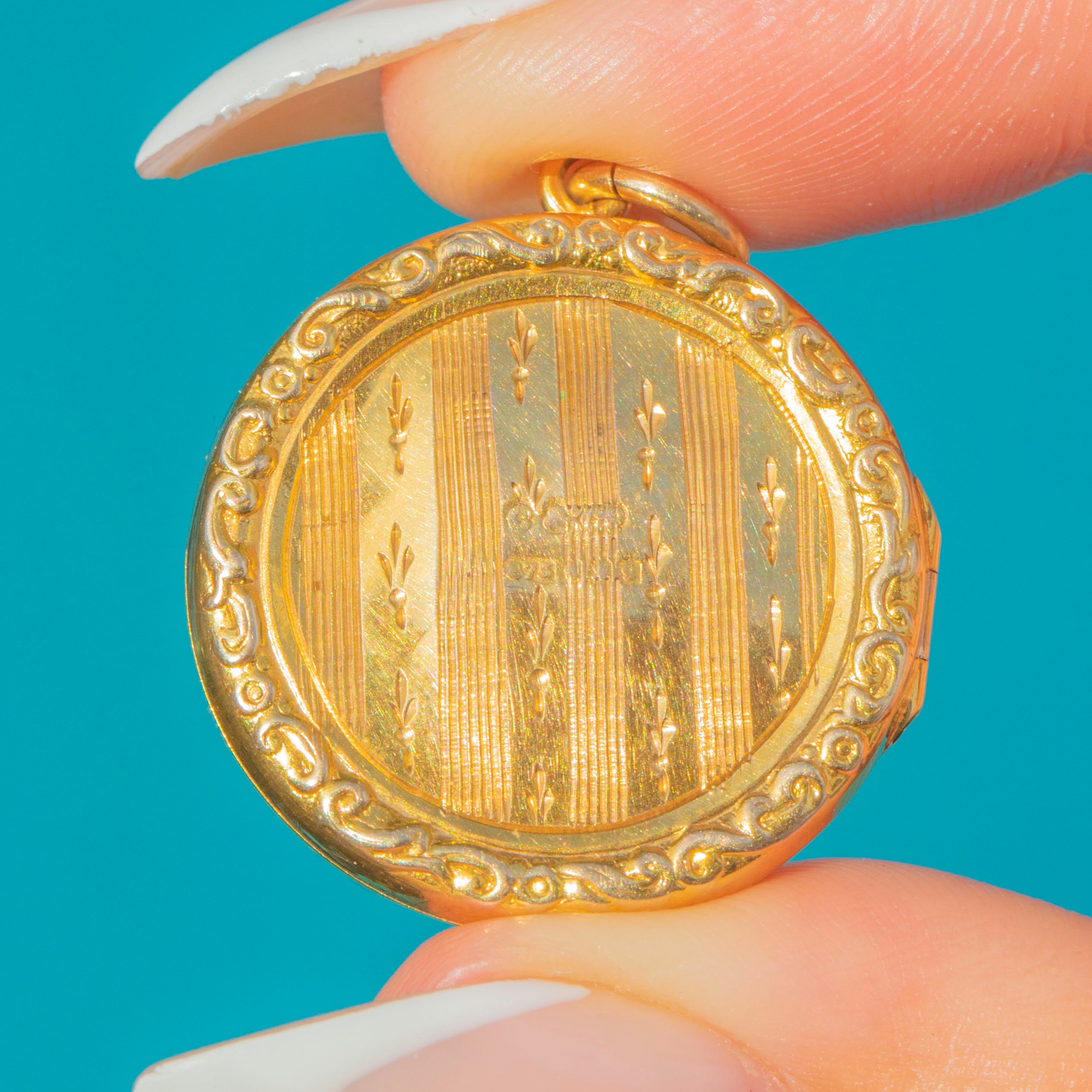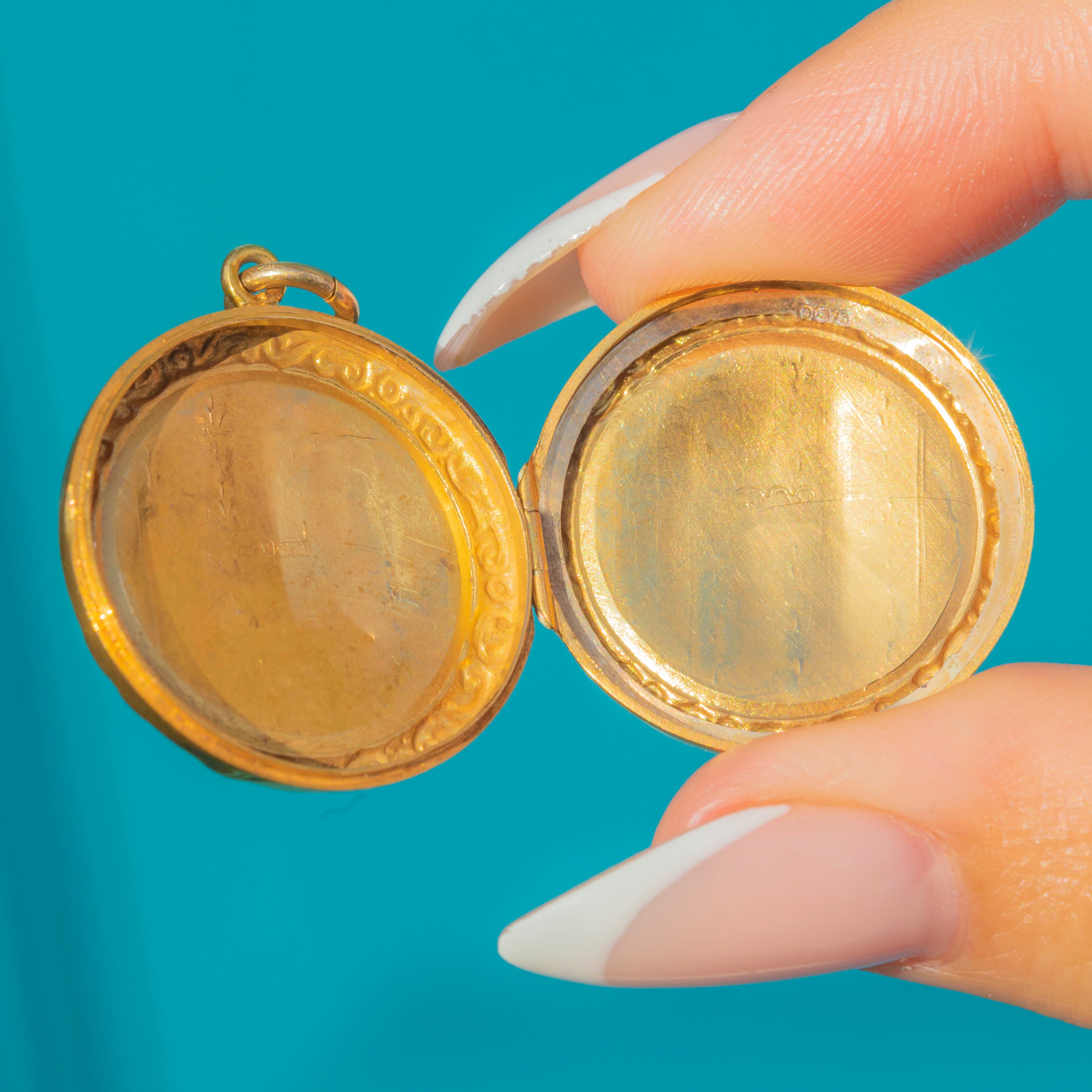 EXCELLENT: The Gold is bright with minimal surface wear. Engraving remains clear and crisp, and the locket closes securely. One frame is present inside, with no dings or scratches to the body. A fine Edwardian locket in beautifully preserved condition.