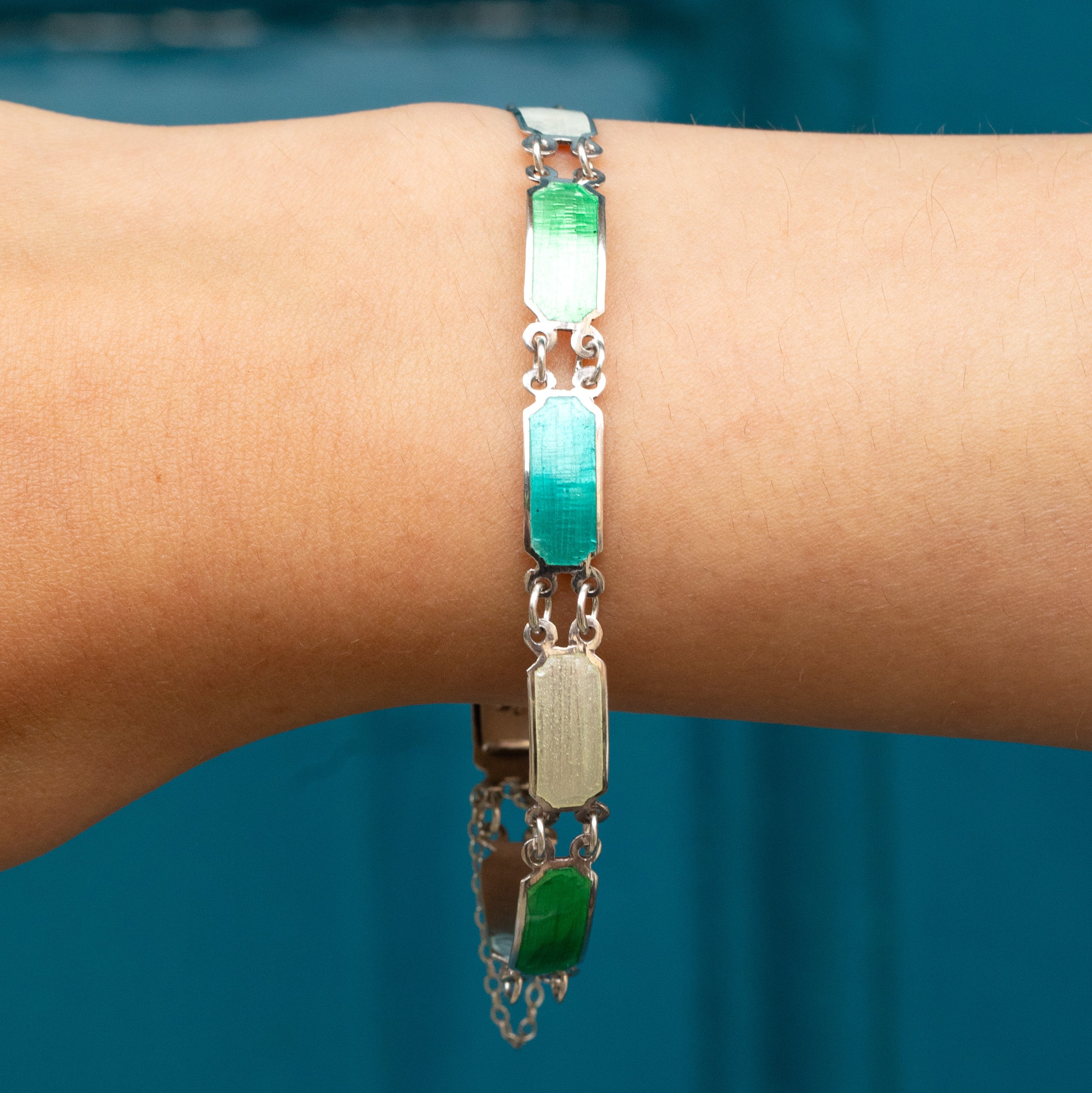 Sterling Silver Green & Powder Blue Enamel Panel Bracelet