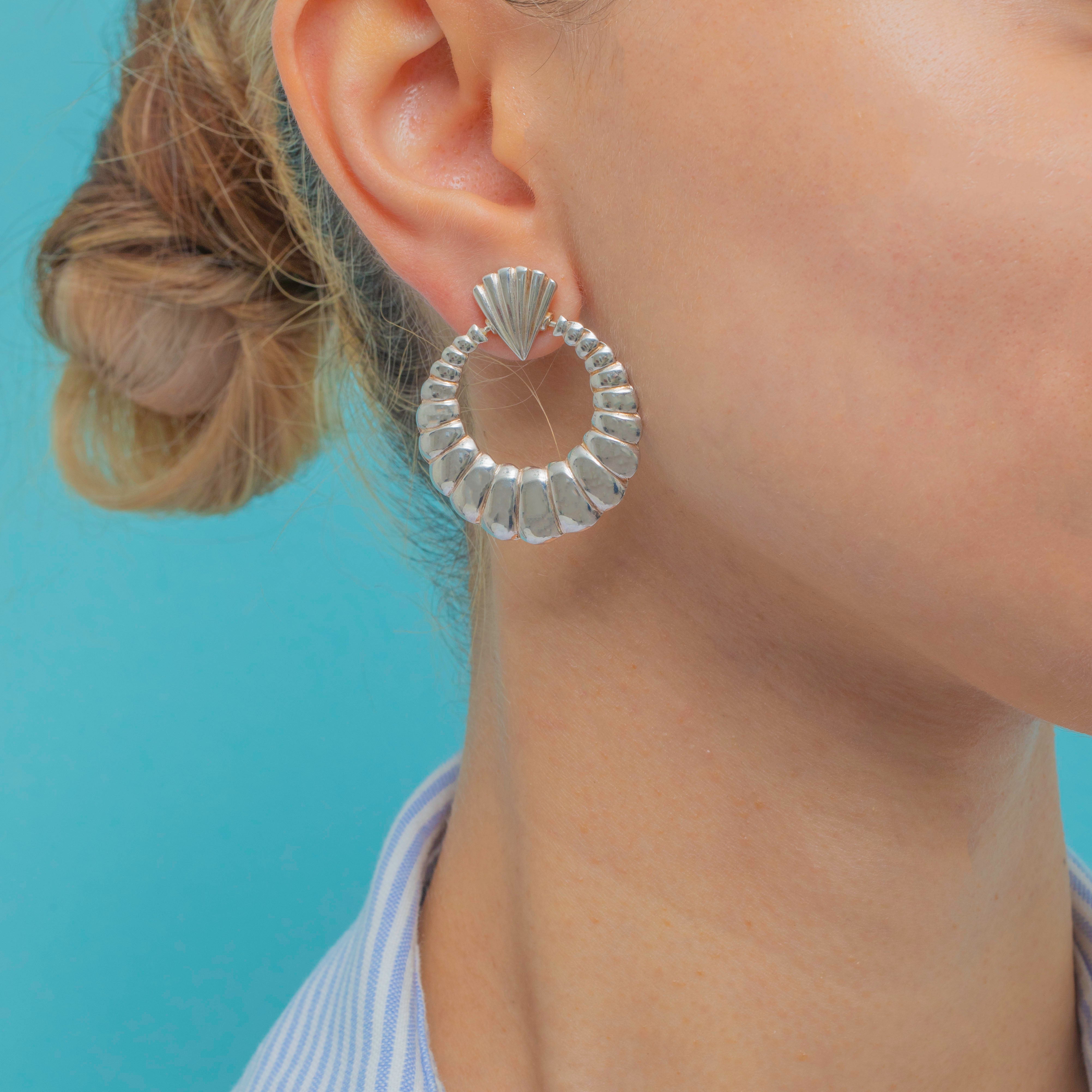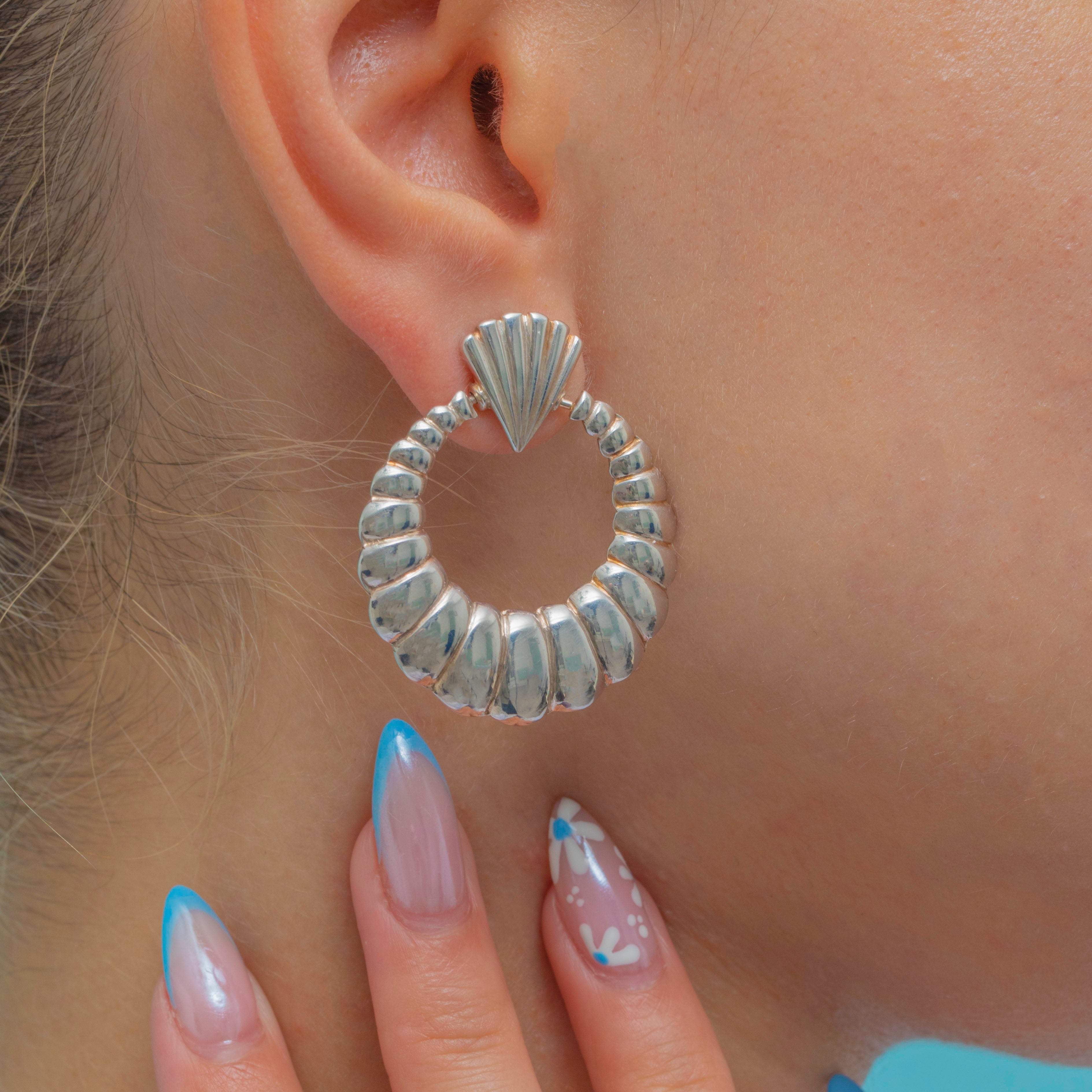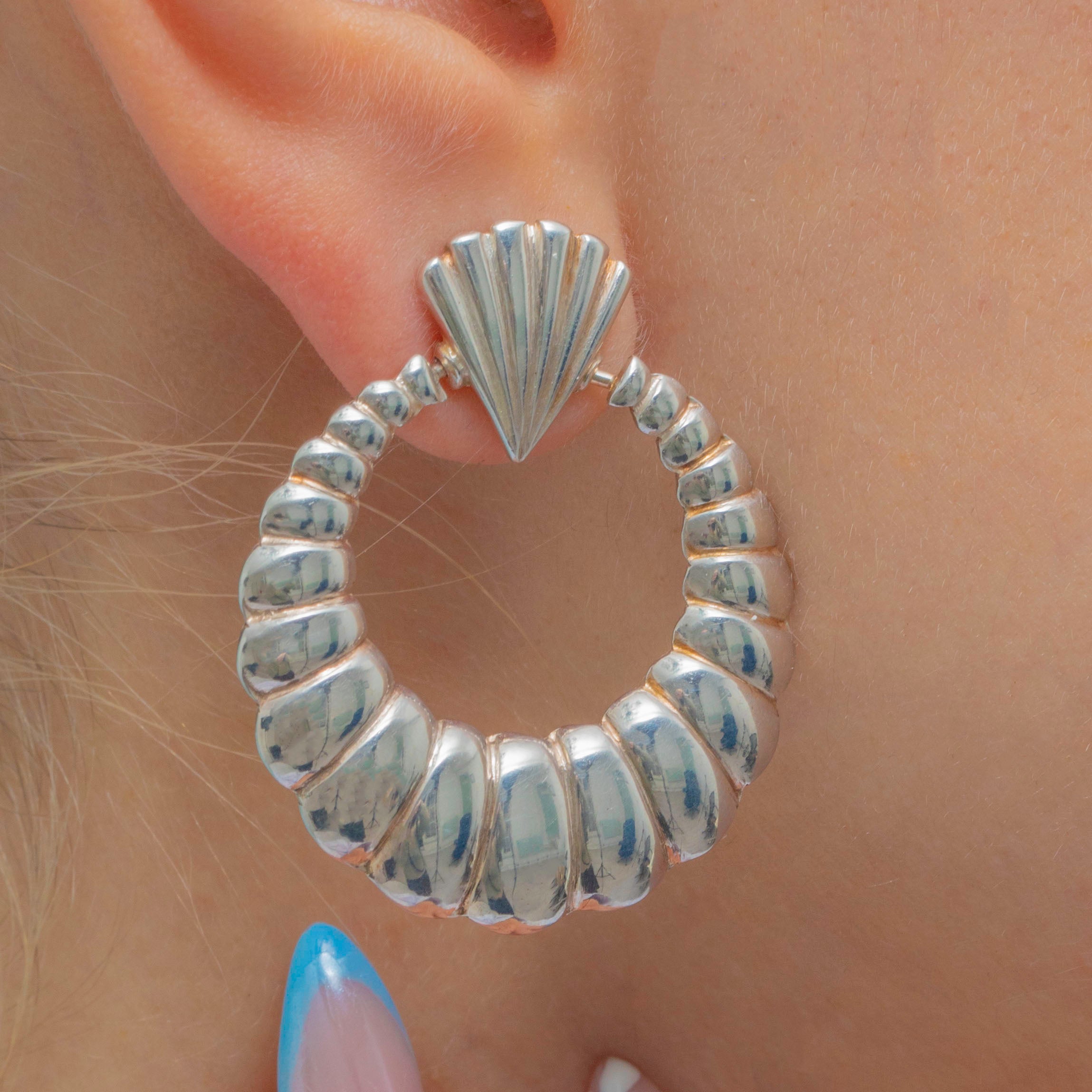 Sterling Silver Scallop Edge Door Knocker Earrings