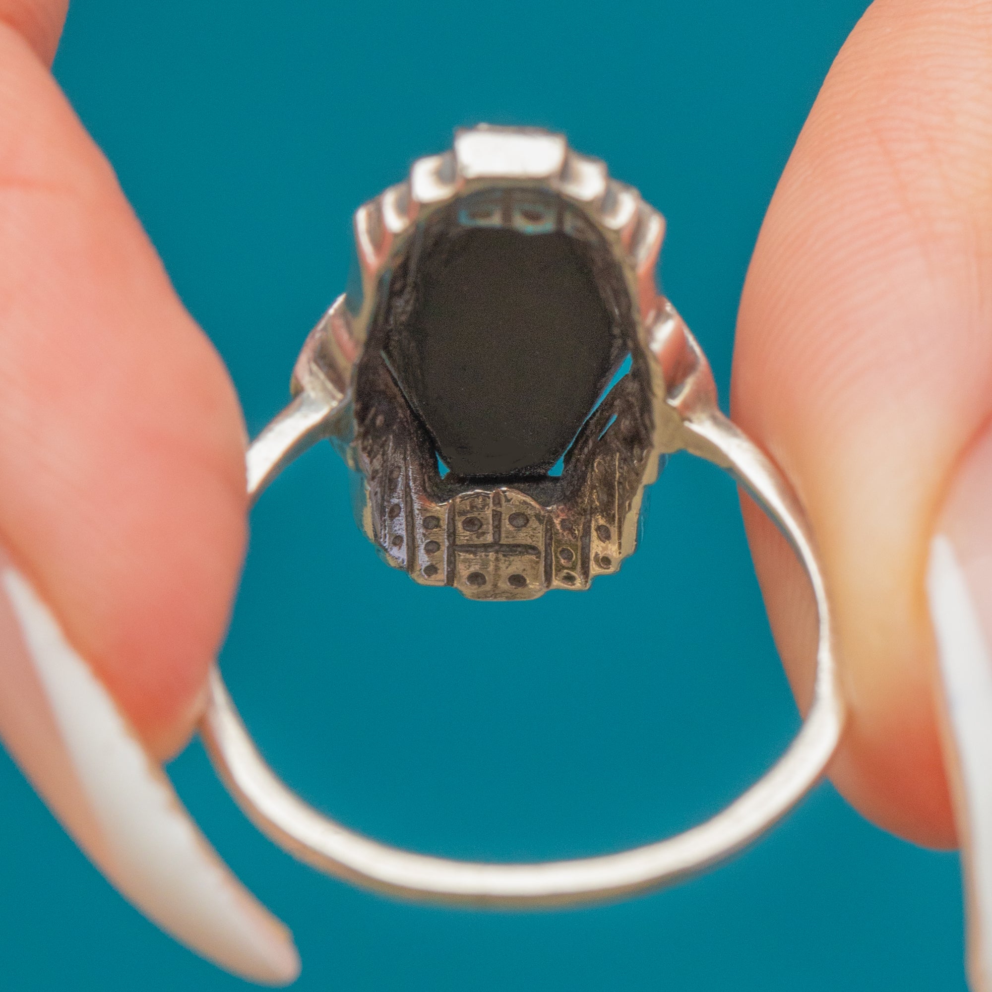 Striking Art Deco Silver Opal Doublet Marcasite Ring