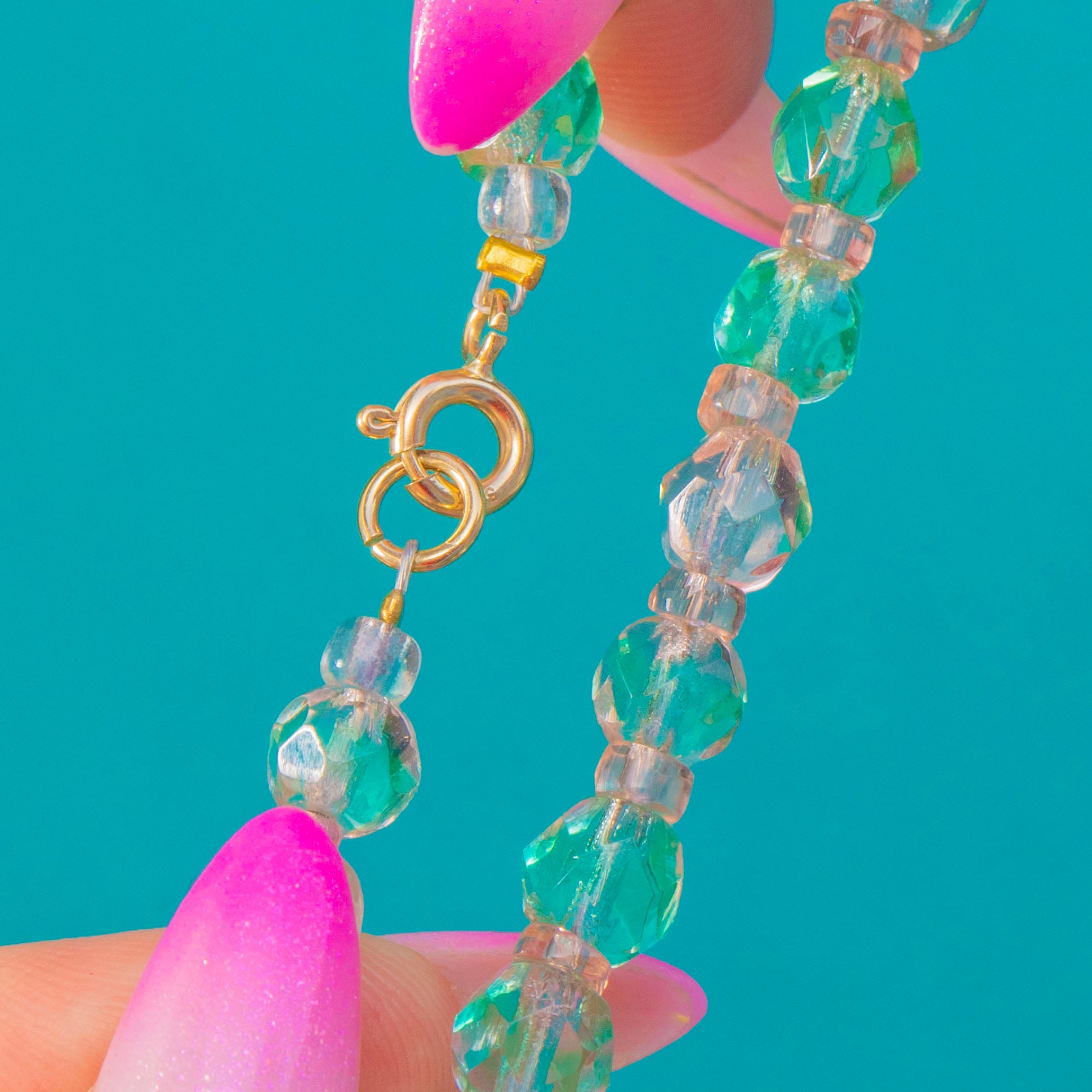 The beads graduate elegantly for a flattering princess‑length drape, secured with a refined 9ct Gold bolt‑ring clasp and matching jump ring. Joyful, eye‑catching and effortlessly wearable, it’s a chic statement you’ll reach for again and again.
