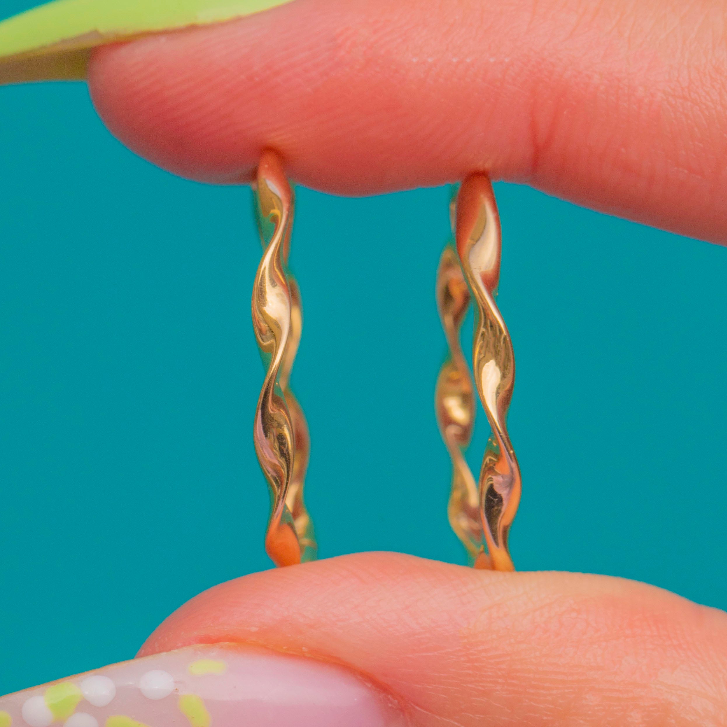 These twisted hoop earrings are effortlessly elegant. Crafted in solid 14ct Gold, their undulating ribbon silhouette and high-polish finish create a sculptural glow that feels refined yet understated—perfect for elevating your everyday.