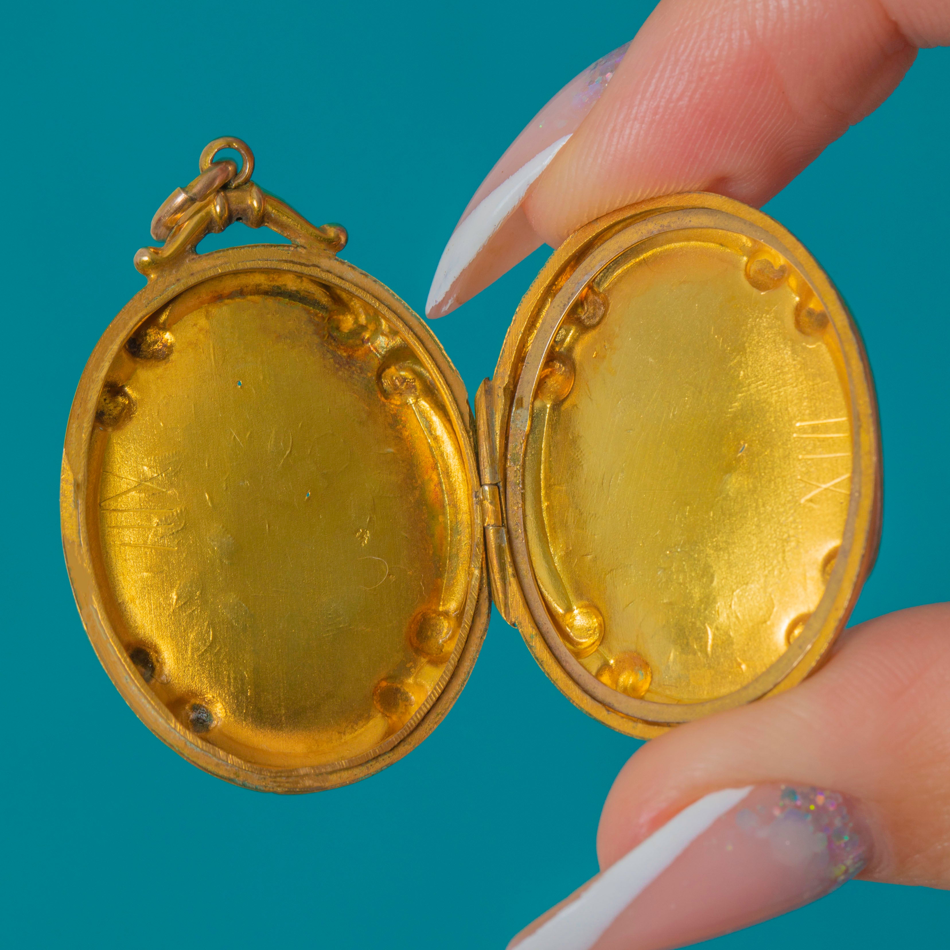 VERY GOOD: The engravings are crisp with only light wear in line with age. The Gold retains a bright buttery tone. The locket opens and closes securely, and one original internal frame remains intact. A beautifully preserved Edwardian locket.