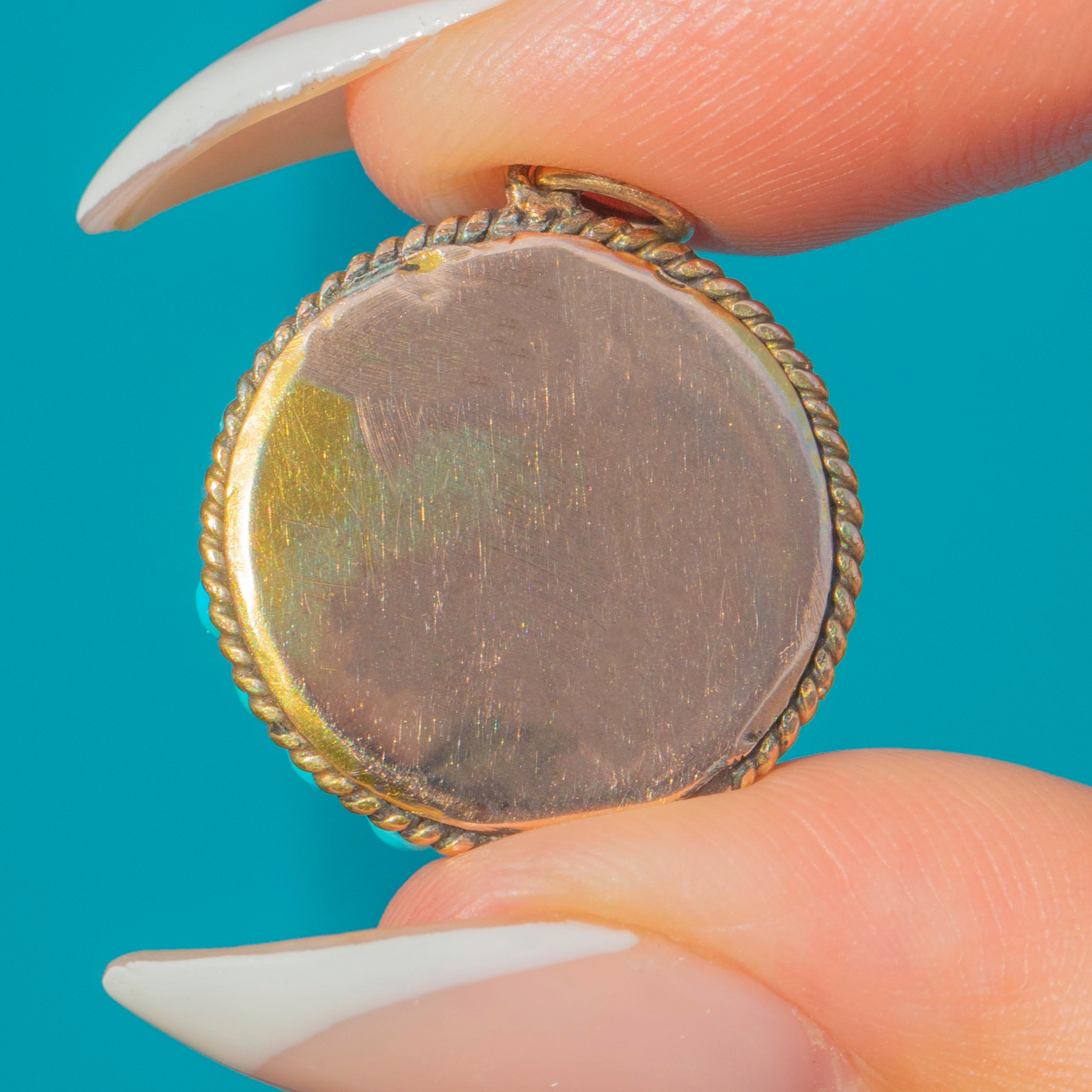 Accented by an intact Gold rope border, this pendant embodies the Victorian love of Turquoise as a symbol of love and protection. A highly decorative jewel, it is both wearable and collectible, offering a rare glimpse into the design sensibilities of the 19th century.