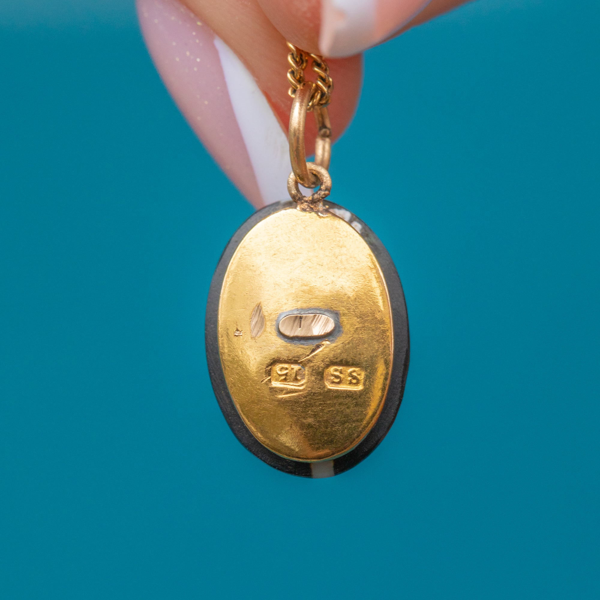 VERY GOOD: This Victorian 15ct Gold Banded Agate charm is in very good condition. The Agate is perfectly smooth, with no surface wear, and is securely affixed to the Gold backing. There is some notable wear on the back, likely from a previous conversion, which cannot be seen from the front and it still feels comfortable against the skin. The Gold is brightly saturated with a chunky 15CT stamp, and will suspend elegantly from a fine Gold chain!