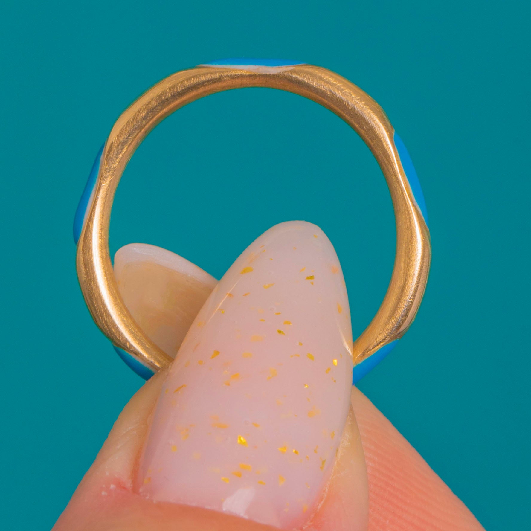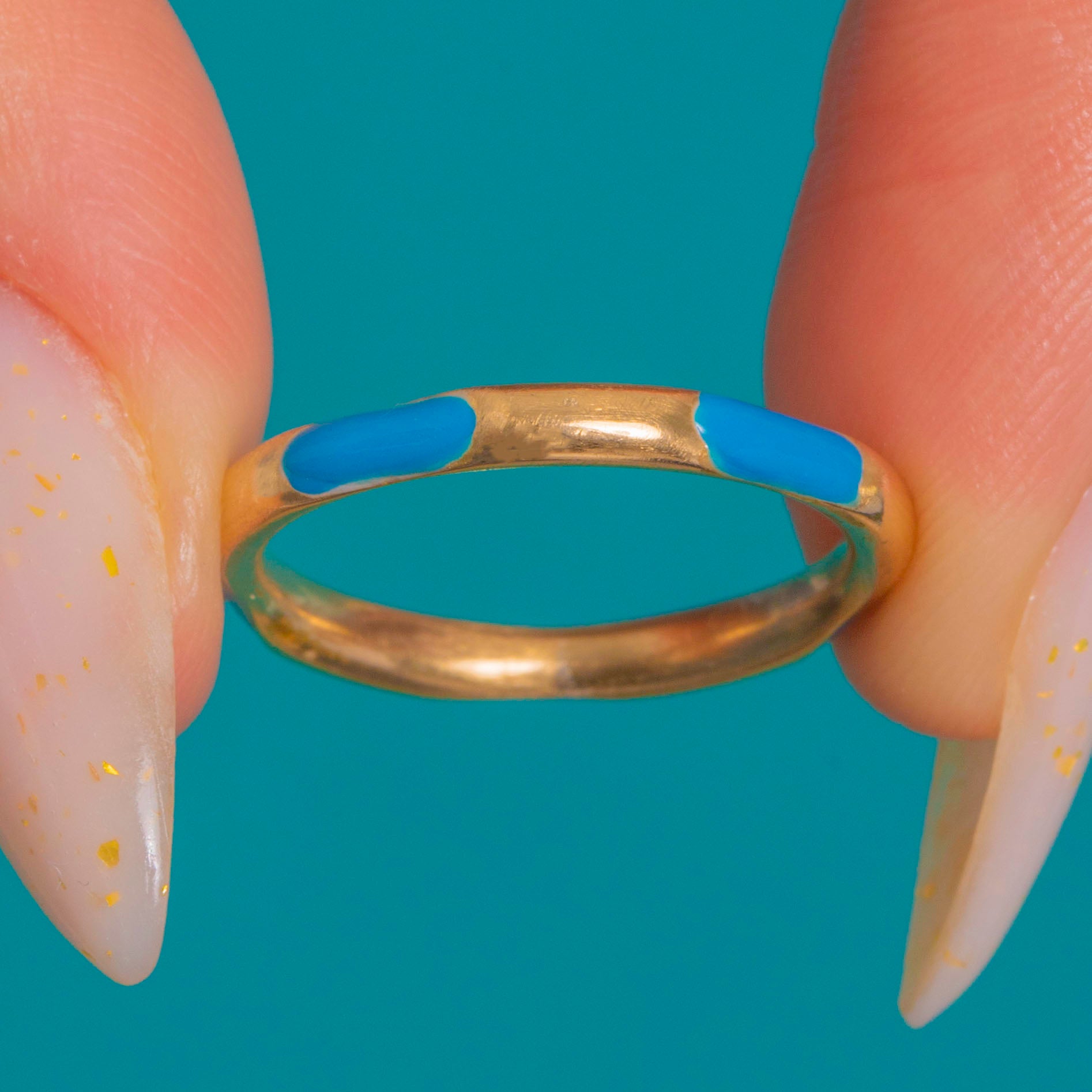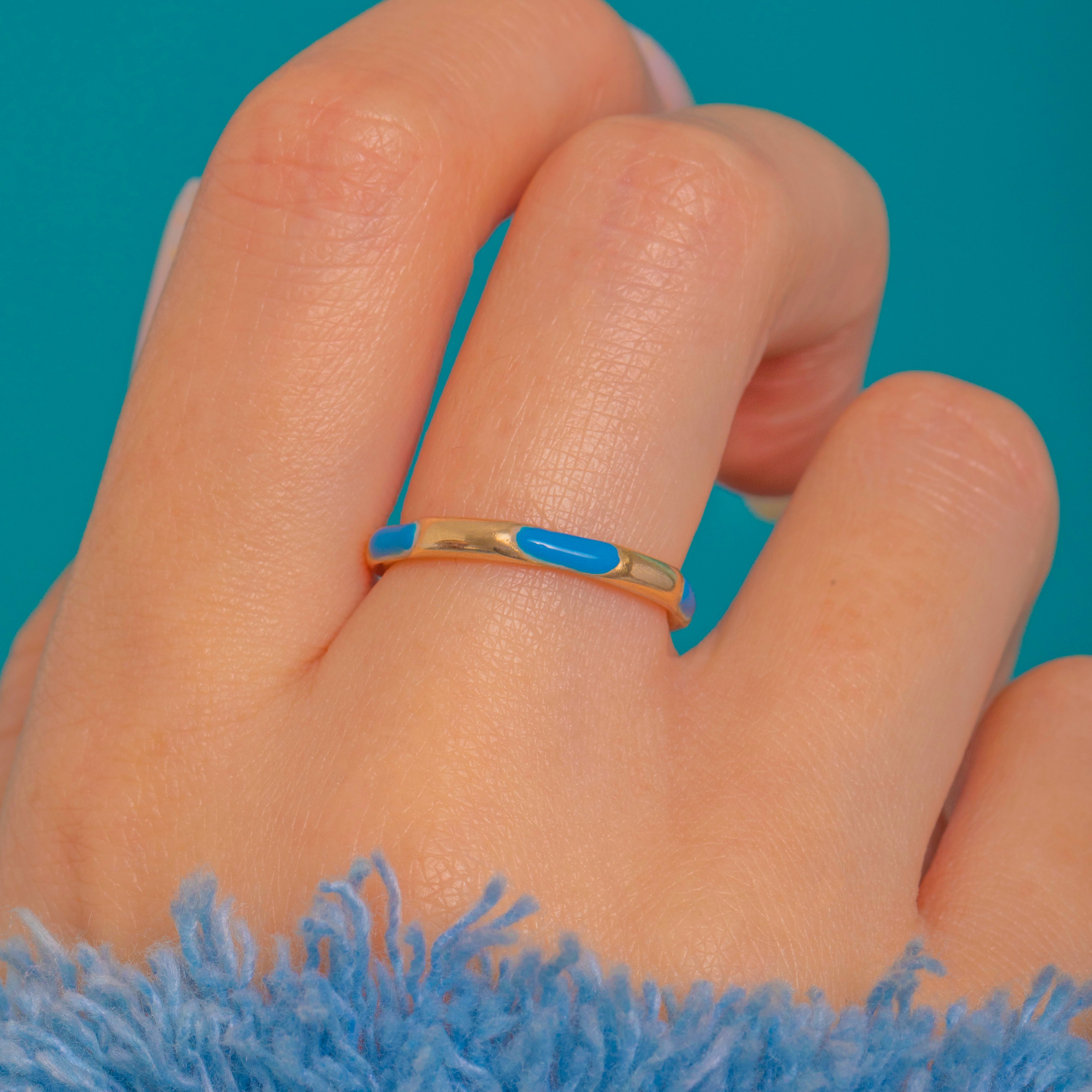 A delicate Victorian treasure in luminous 15ct Gold, this slim band is accented with glossy Blue Enamel in repeating oval panels along the entire shank. Its smooth low-dome profile and high polish give a refined, silk-like sheen, while the vivid Enamel brings a joyful pop of colour.