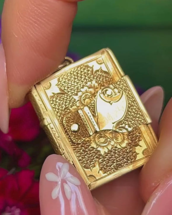 Victorian 15ct Gold Engraved Book Locket