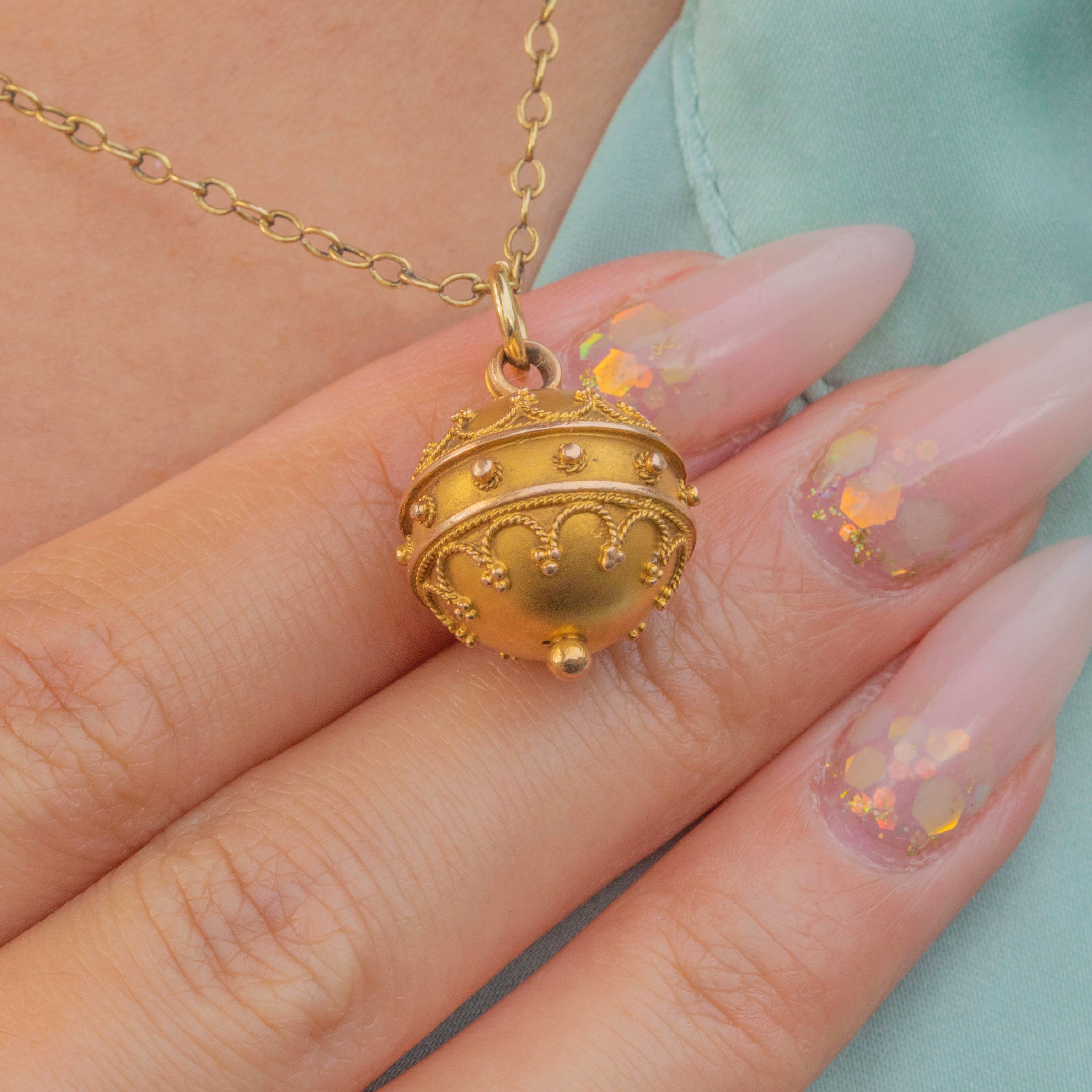 Victorian 15ct Gold Filigree Orb Sphere Pendant