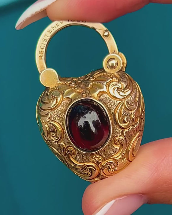 Victorian 15ct Gold Garnet Heart Padlock