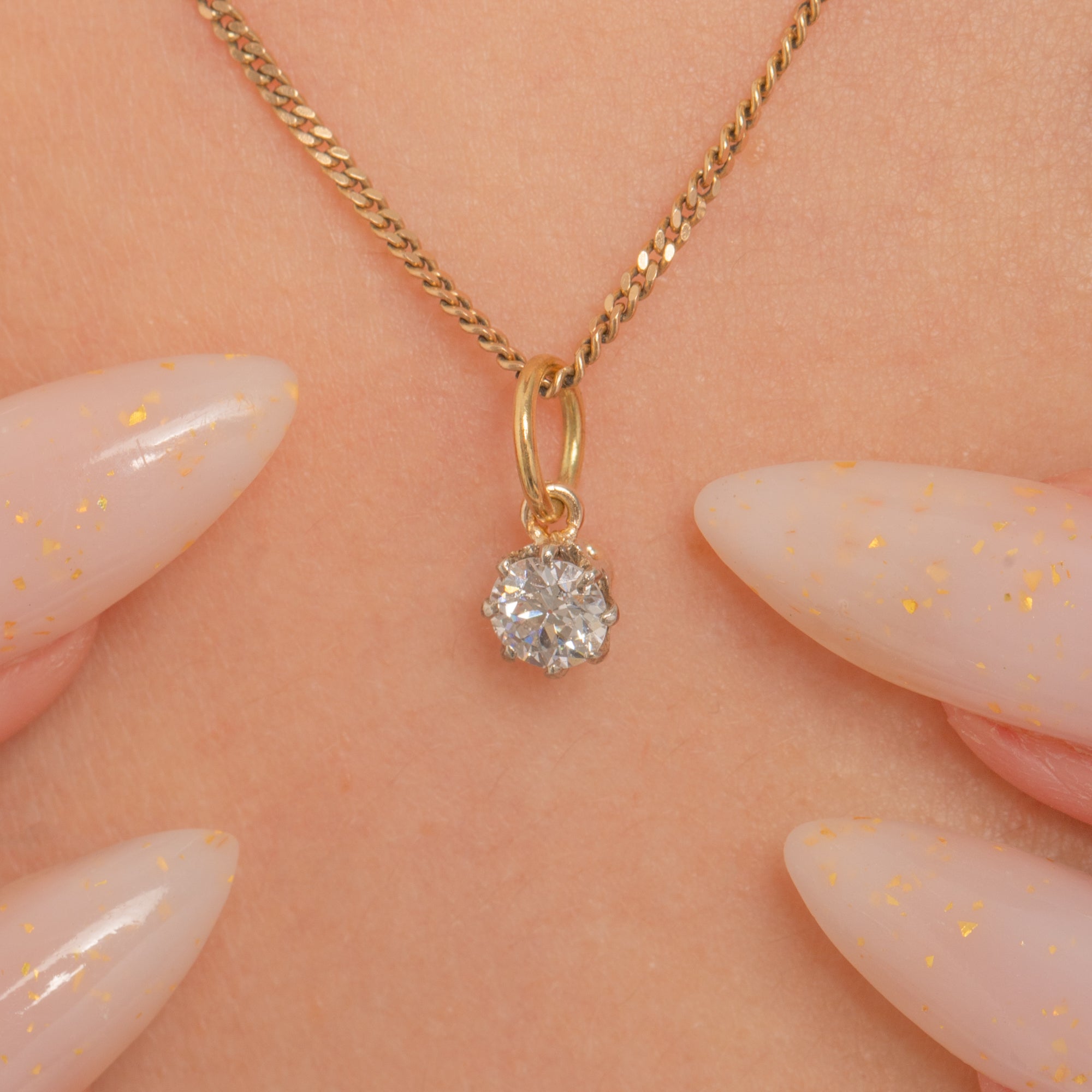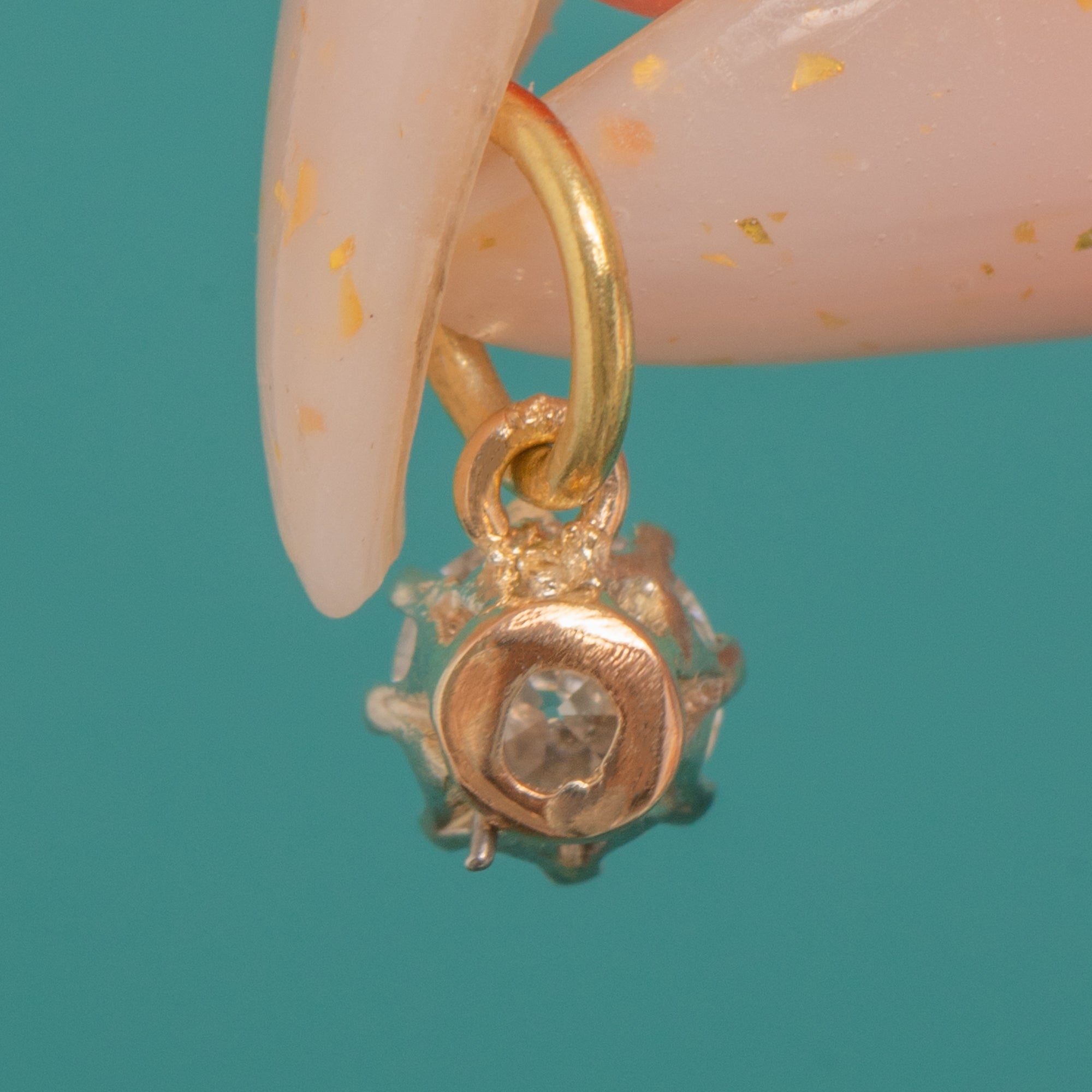 A whisper of Victorian elegance, this petite old mine-cut Diamond solitaire glows in warm 15ct Gold and is neatly fitted with an 18ct Gold jump ring. The Diamond has that romantic, softly scintillating allure that old-cuts are loved for, bringing a delicate sparkle to any look.