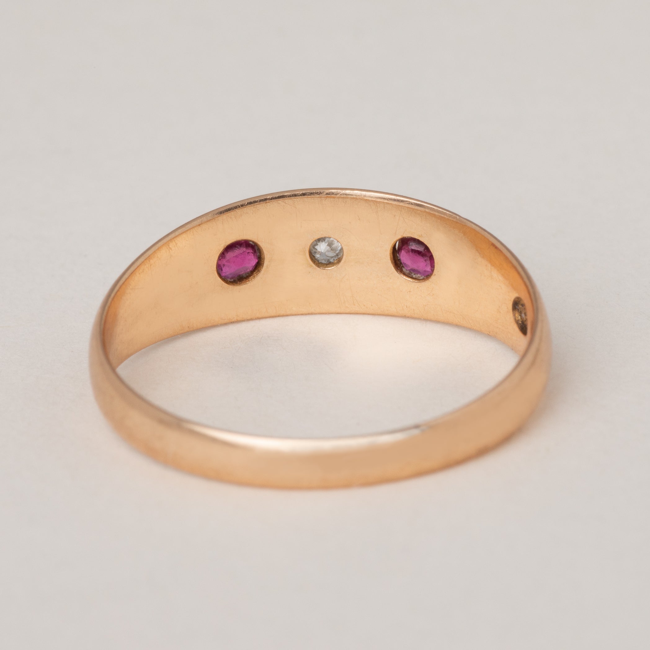 Victorian 15ct Gold Ruby Diamond Gypsy Ring, c.1896