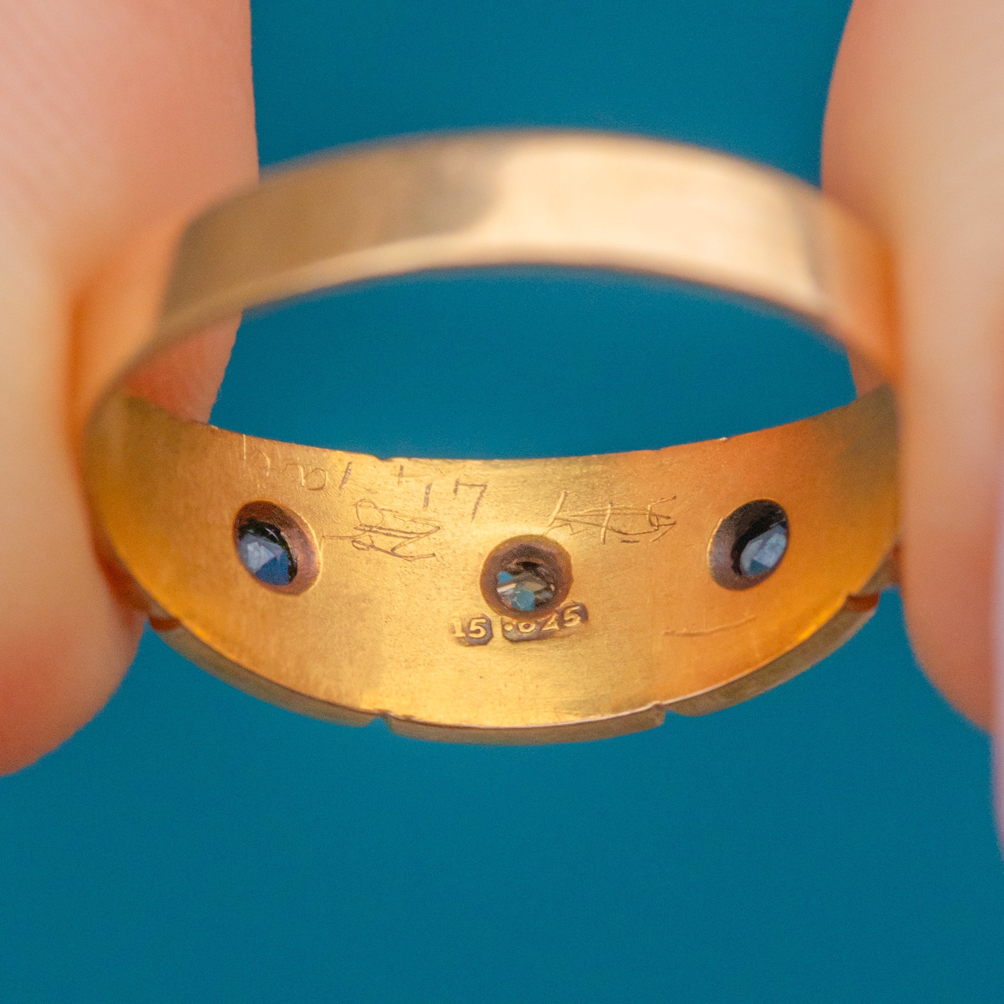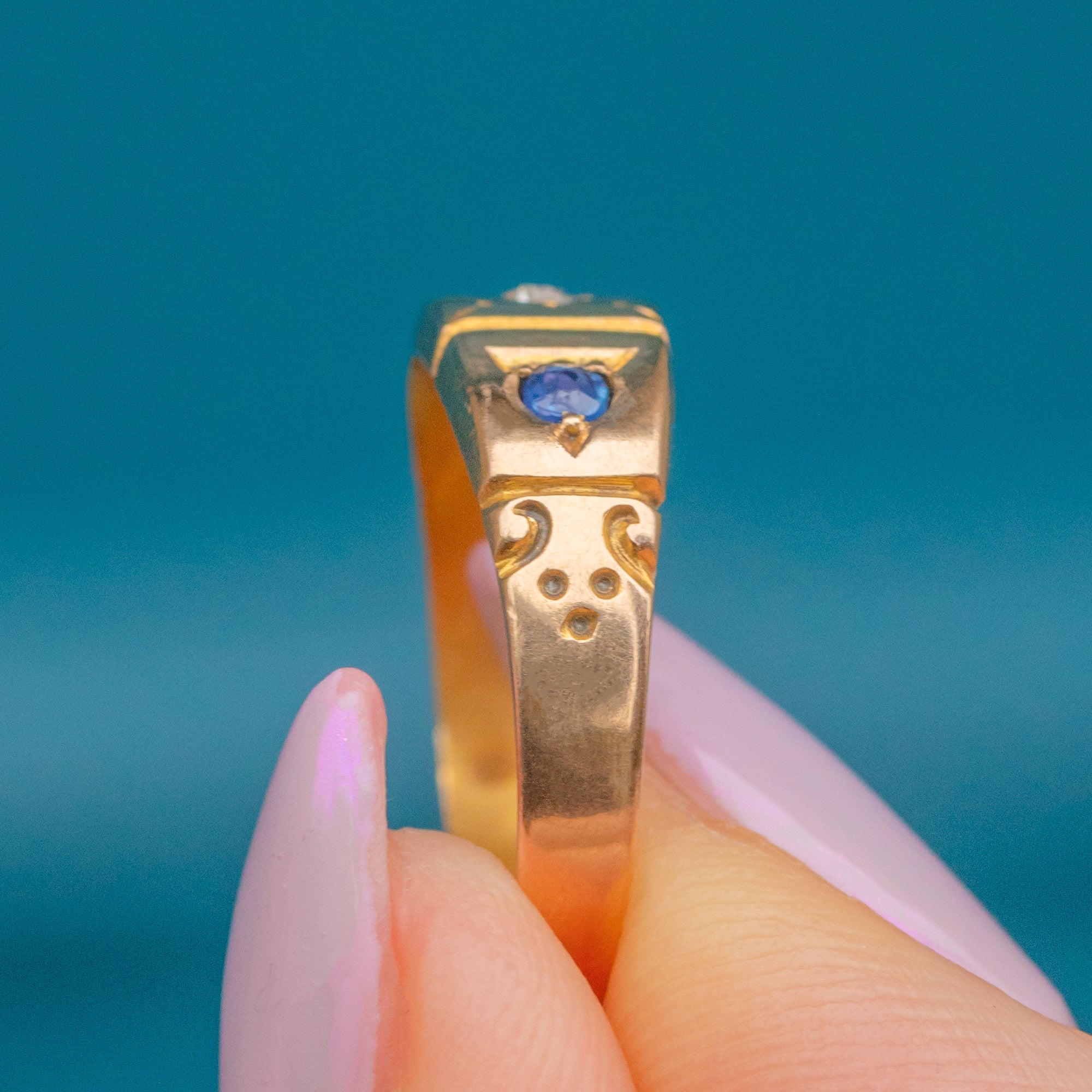 Victorian 15ct Gold Sapphire Diamond Gypsy Ring c.1893