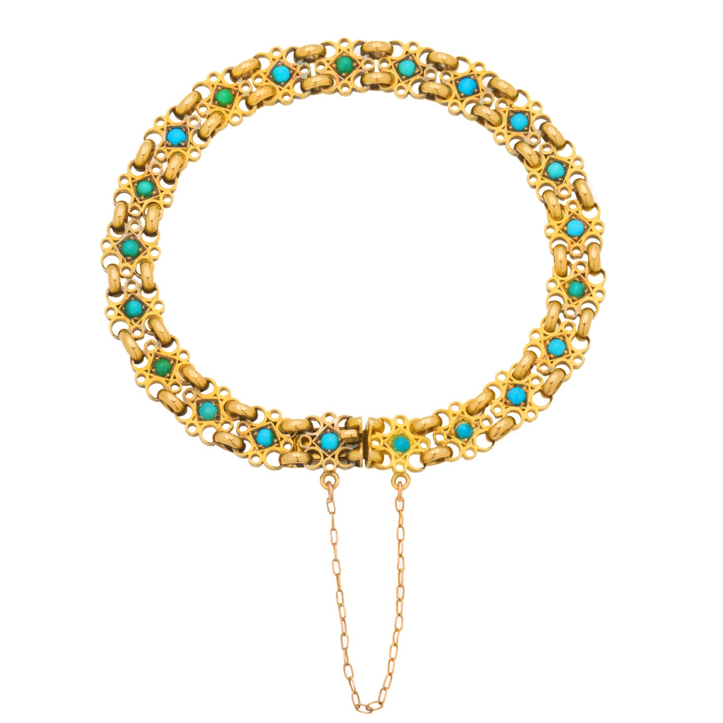 Victorian 15ct Gold Turquoise Bracelet- 19.5g