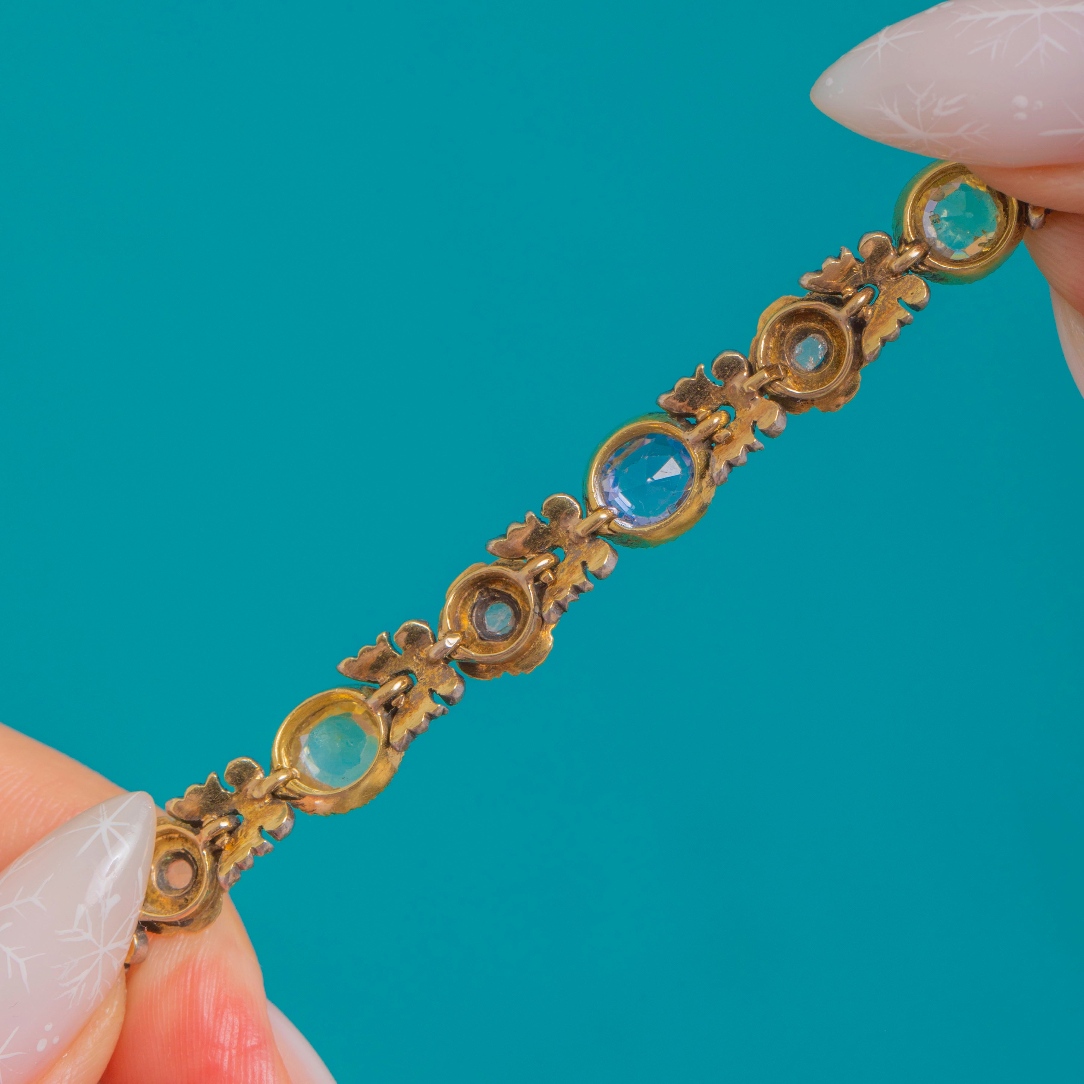 Victorian 18ct Gold and Silver Natural Blue & Yellow Sapphire and Diamond Bracelet c.1890