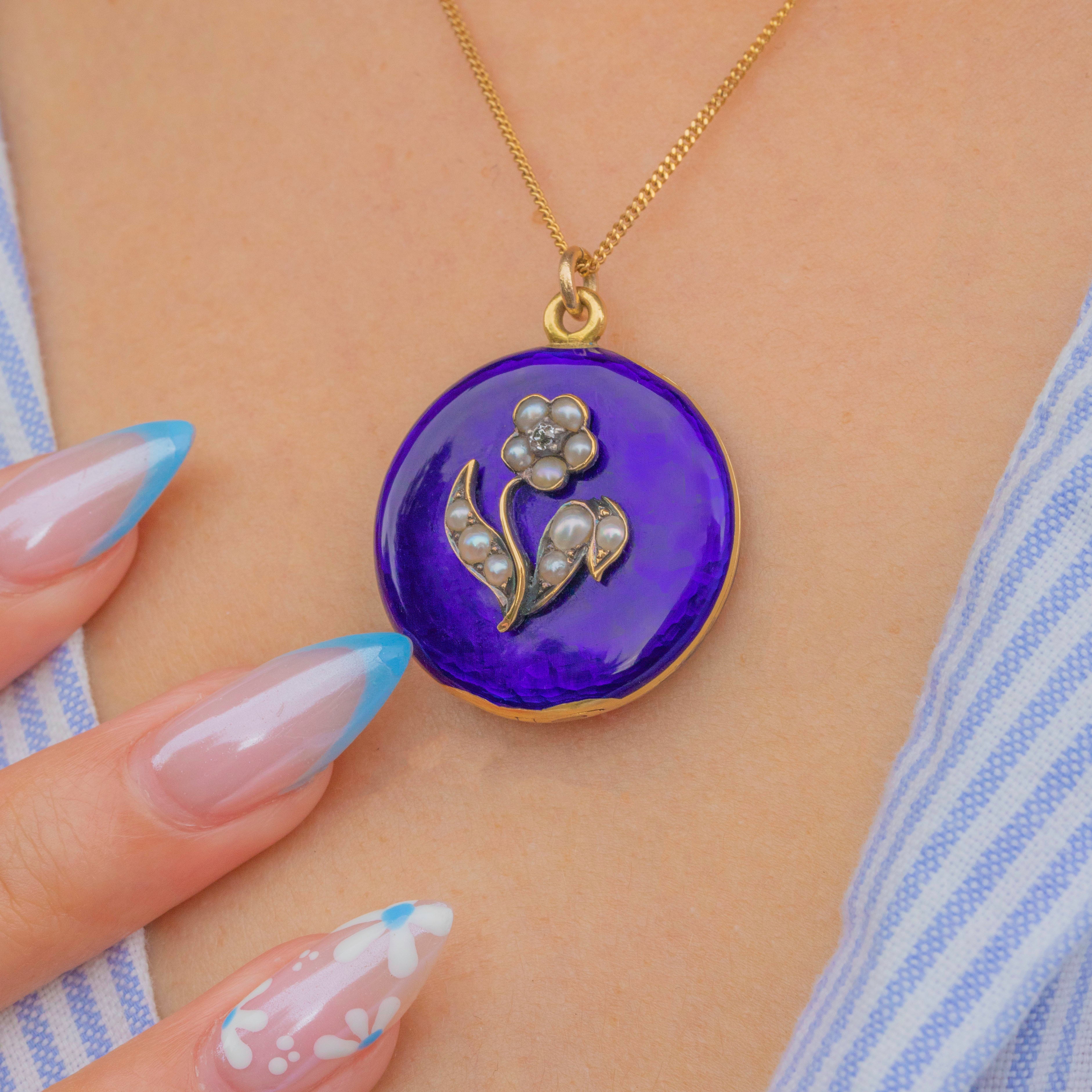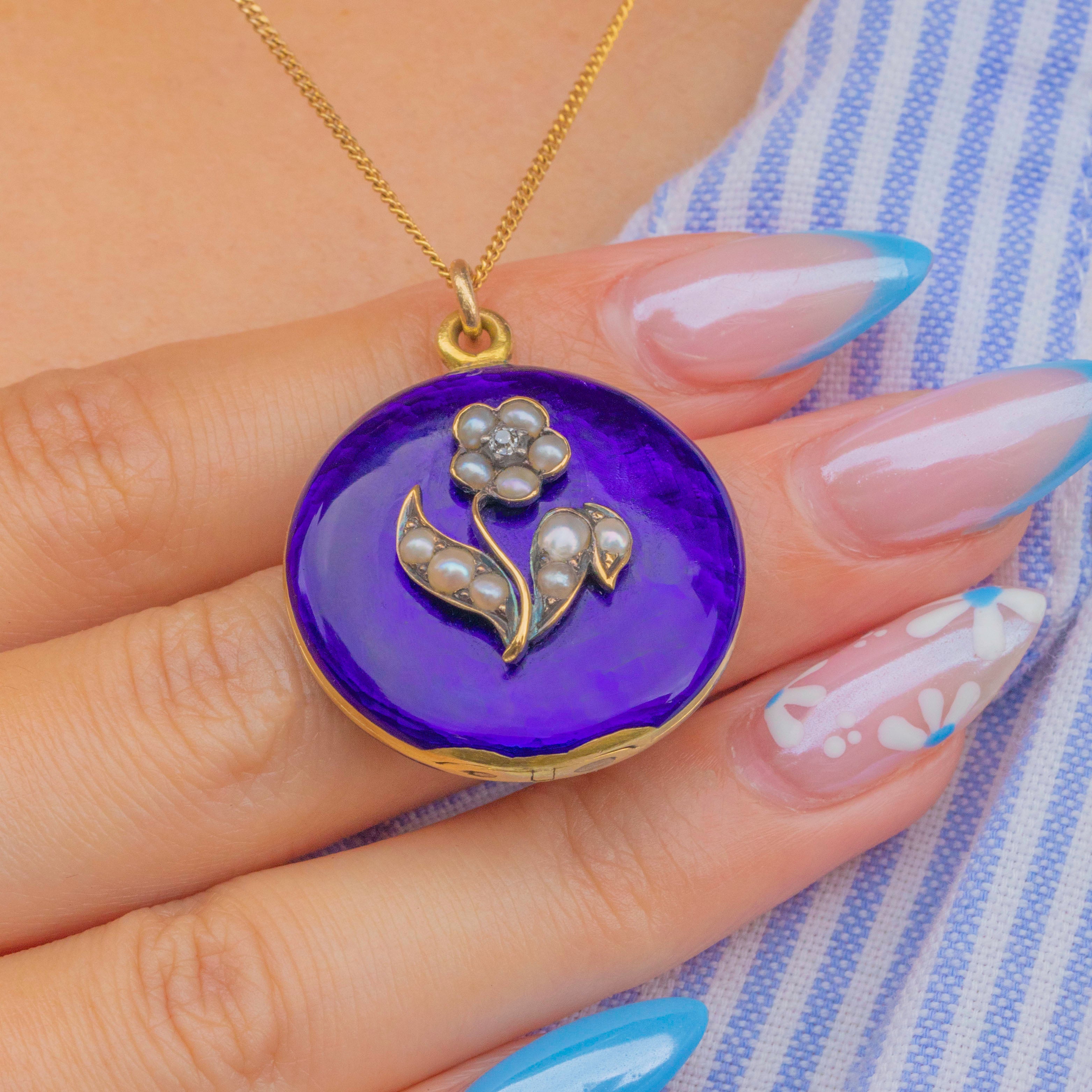 Add a touch of floral charm to your collection with this Victorian forget-me-not Blue Enamel locket!