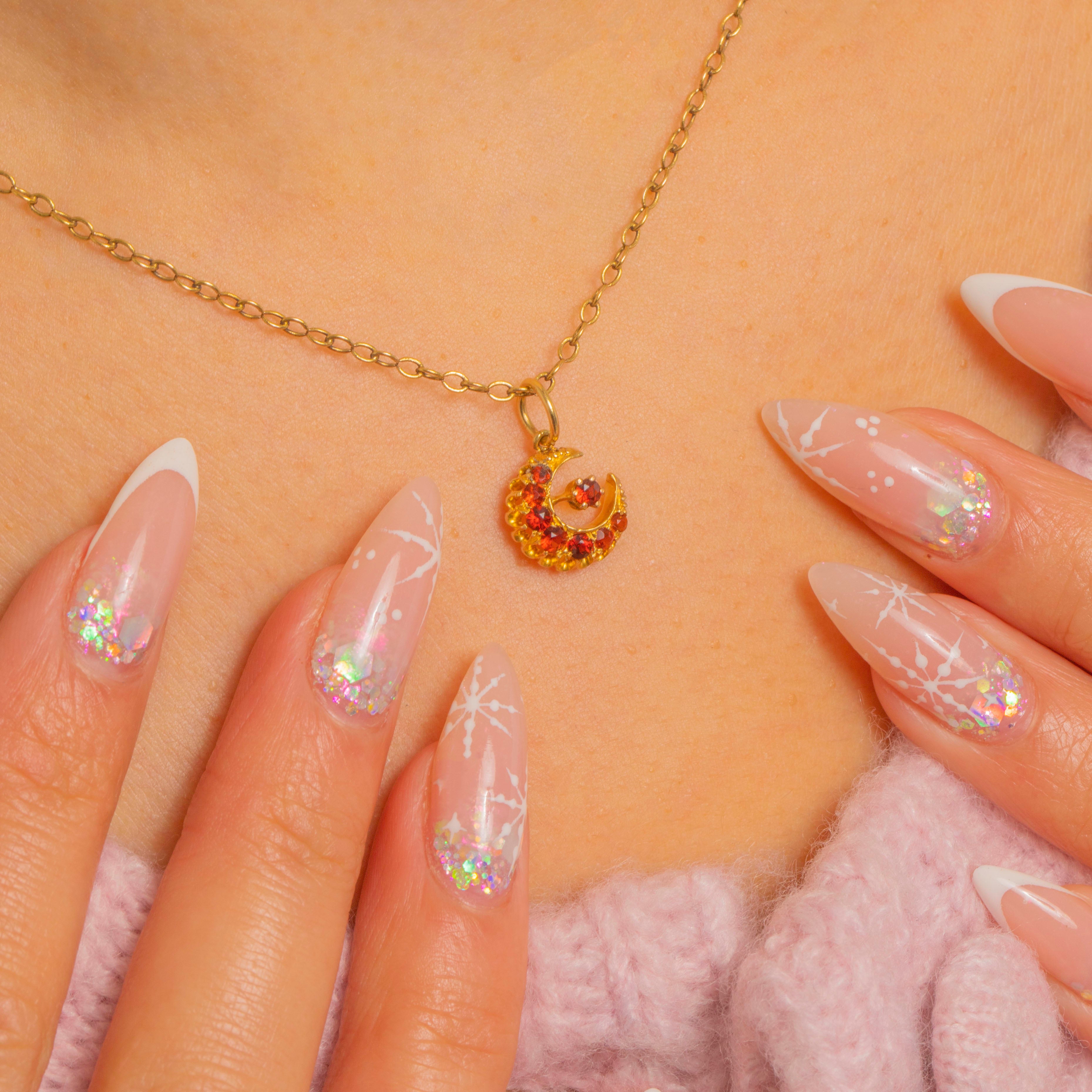 Petite yet full of personality, it layers effortlessly with other pieces or brings a flash of antique colour worn solo — a charming symbol of Victorian fascination with the moon and stars.