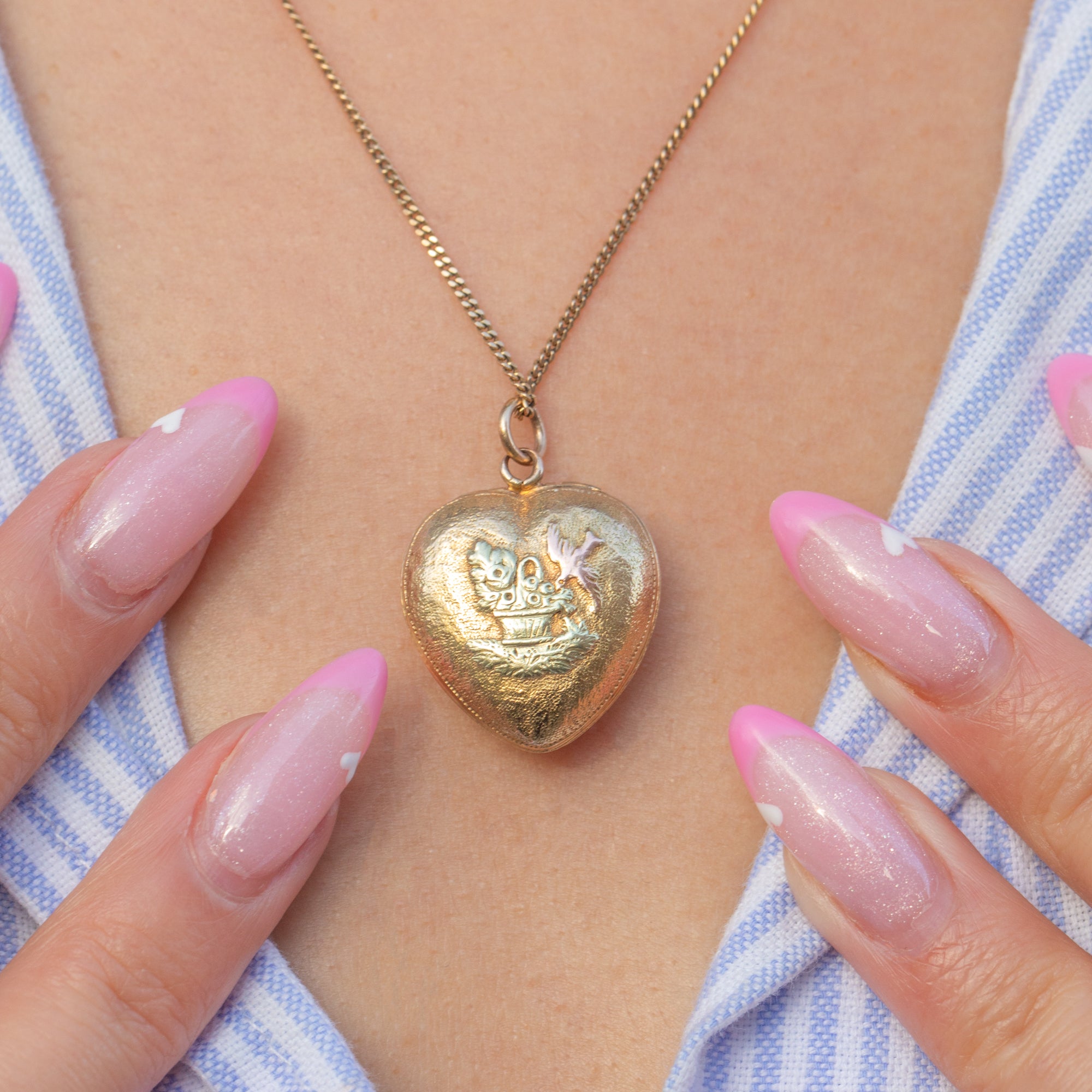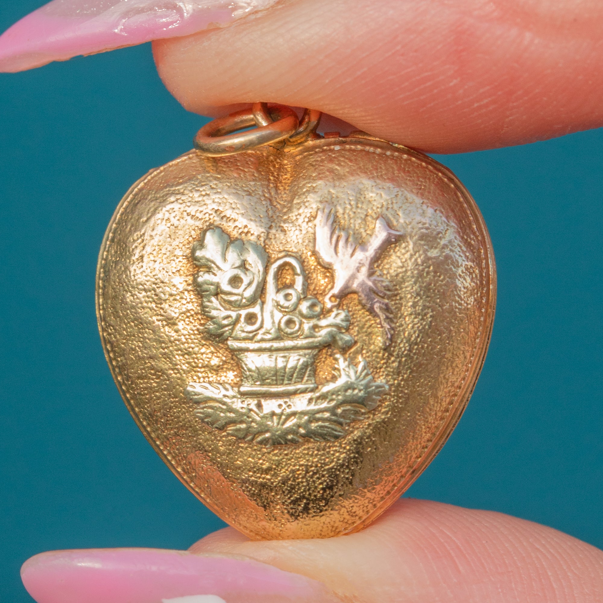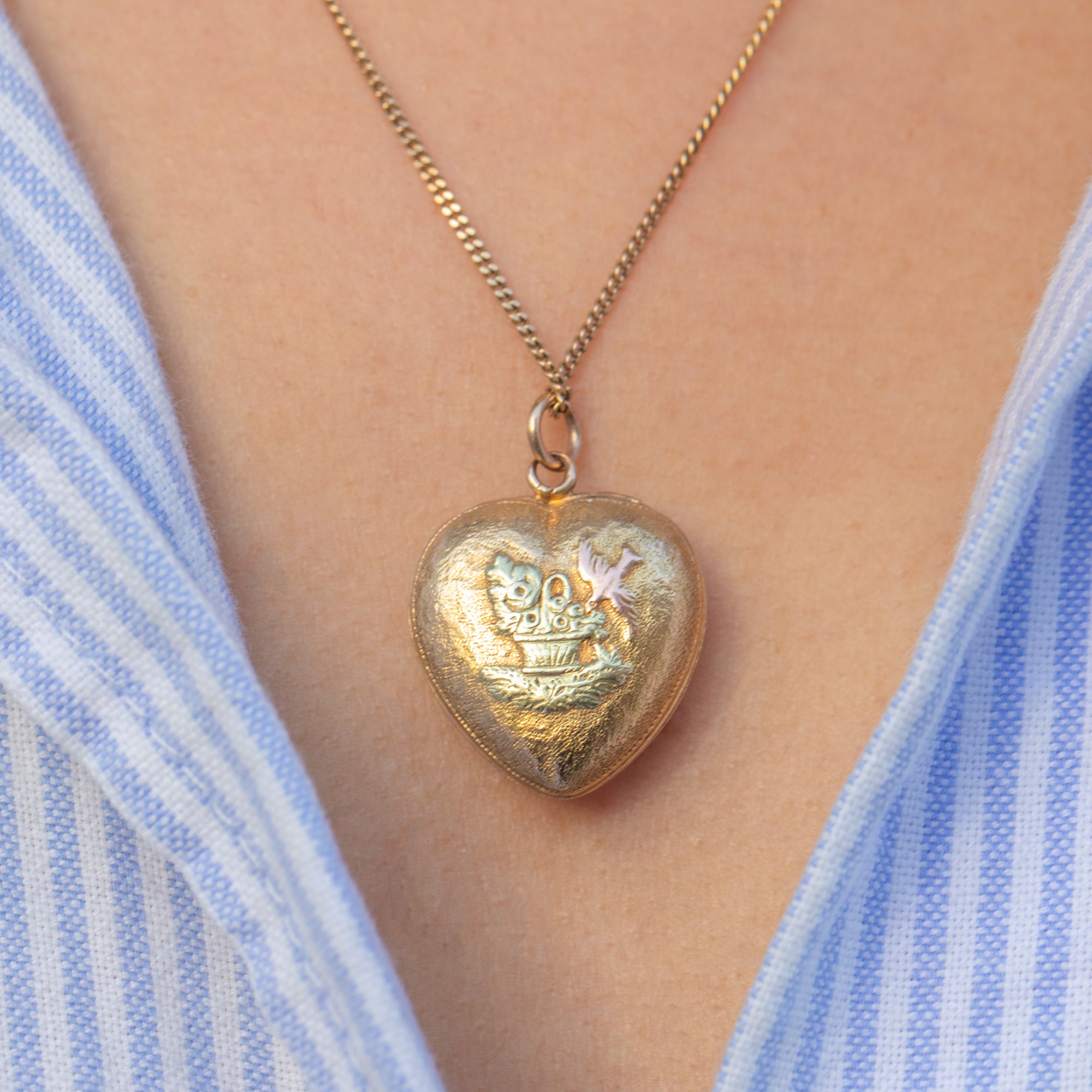 Victorian 18ct Gold Heart Locket with Bouquet & Bird, c.1870