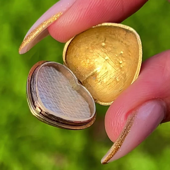 EXCELLENT: The locket is in outstanding antique condition with beautifully preserved engravings and a rich, even bloom finish. Opens and closes securely with no dents or damage.