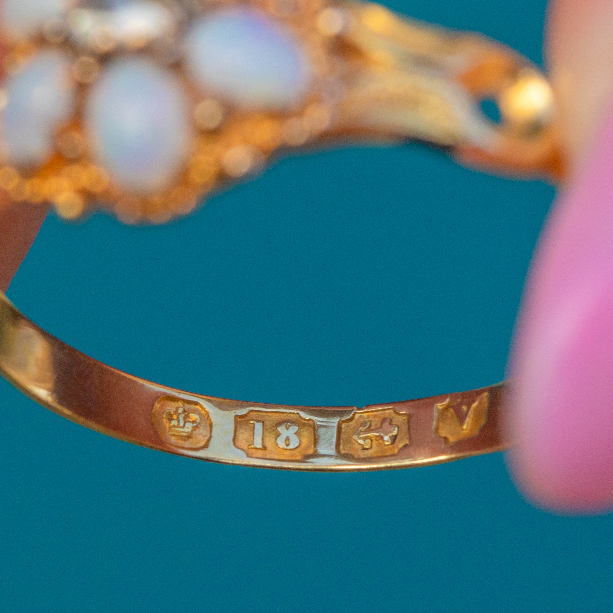 Victorian 18ct Gold Opal Rose-Cut Diamond Ring c.1870