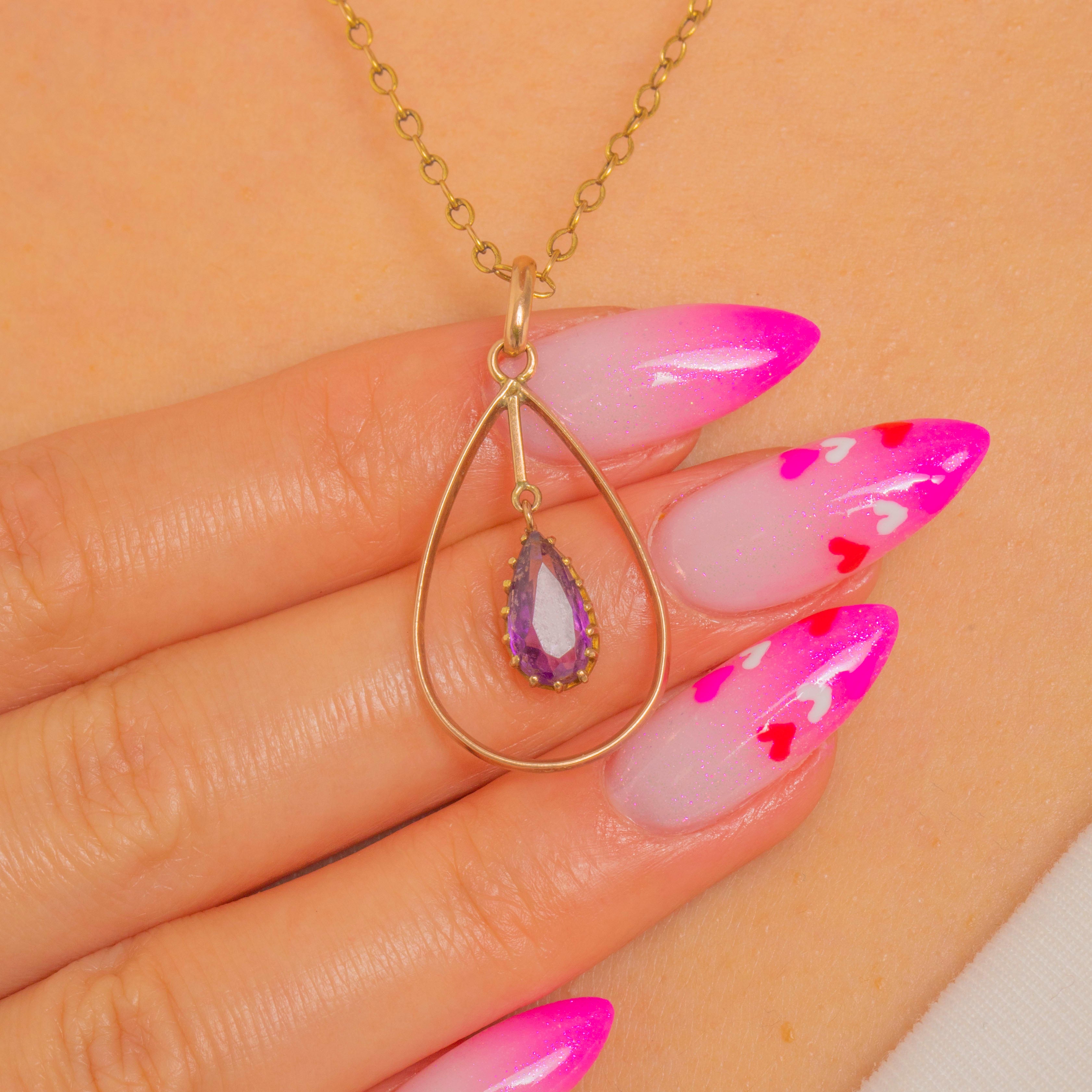 Victorian 9ct Gold Amethyst Teardrop Drop Pendant c.1900