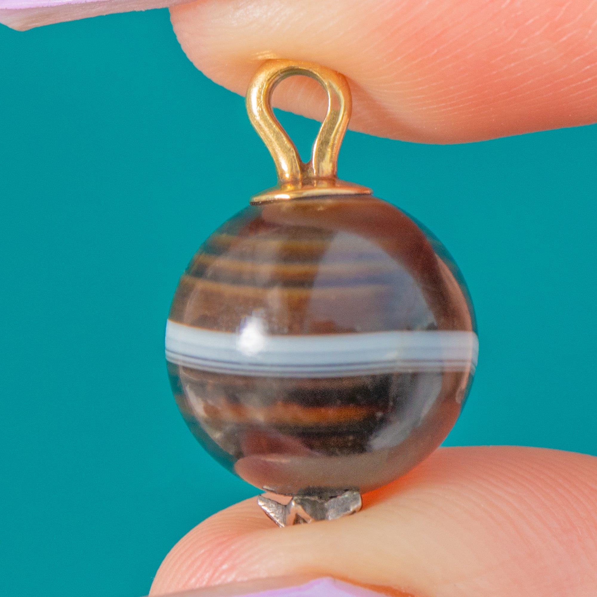 Victorian 9ct Gold Banded Agate Orb Charm with Diamond Star