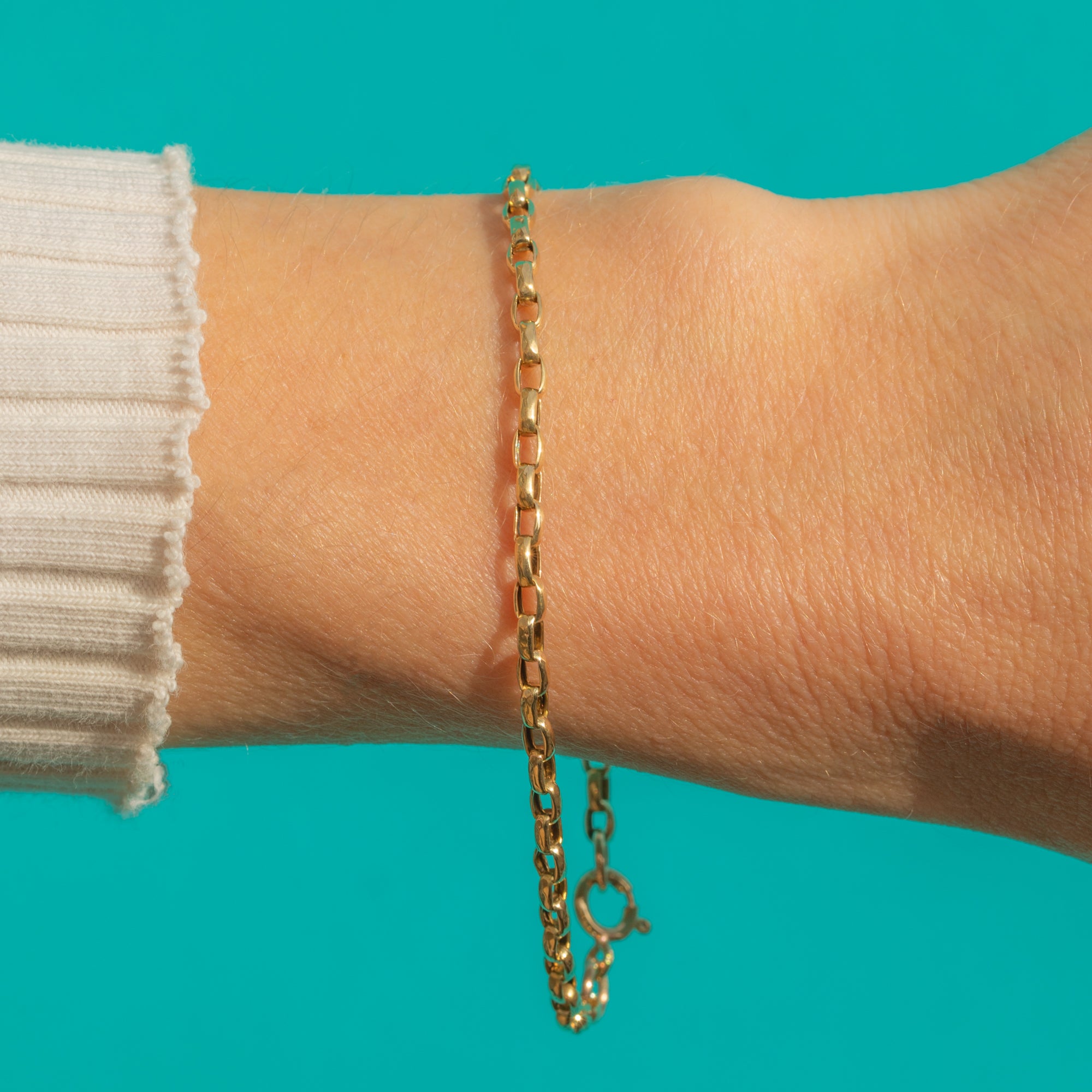 This Victorian 9ct Gold bracelet is crafted from faceted Belcher links, giving it a subtle sparkle and elegant texture. The slim 2.5mm links create a refined silhouette, making it perfect to wear alone for a touch of antique charm or layered with other Gold chains and bracelets for a more statement look.