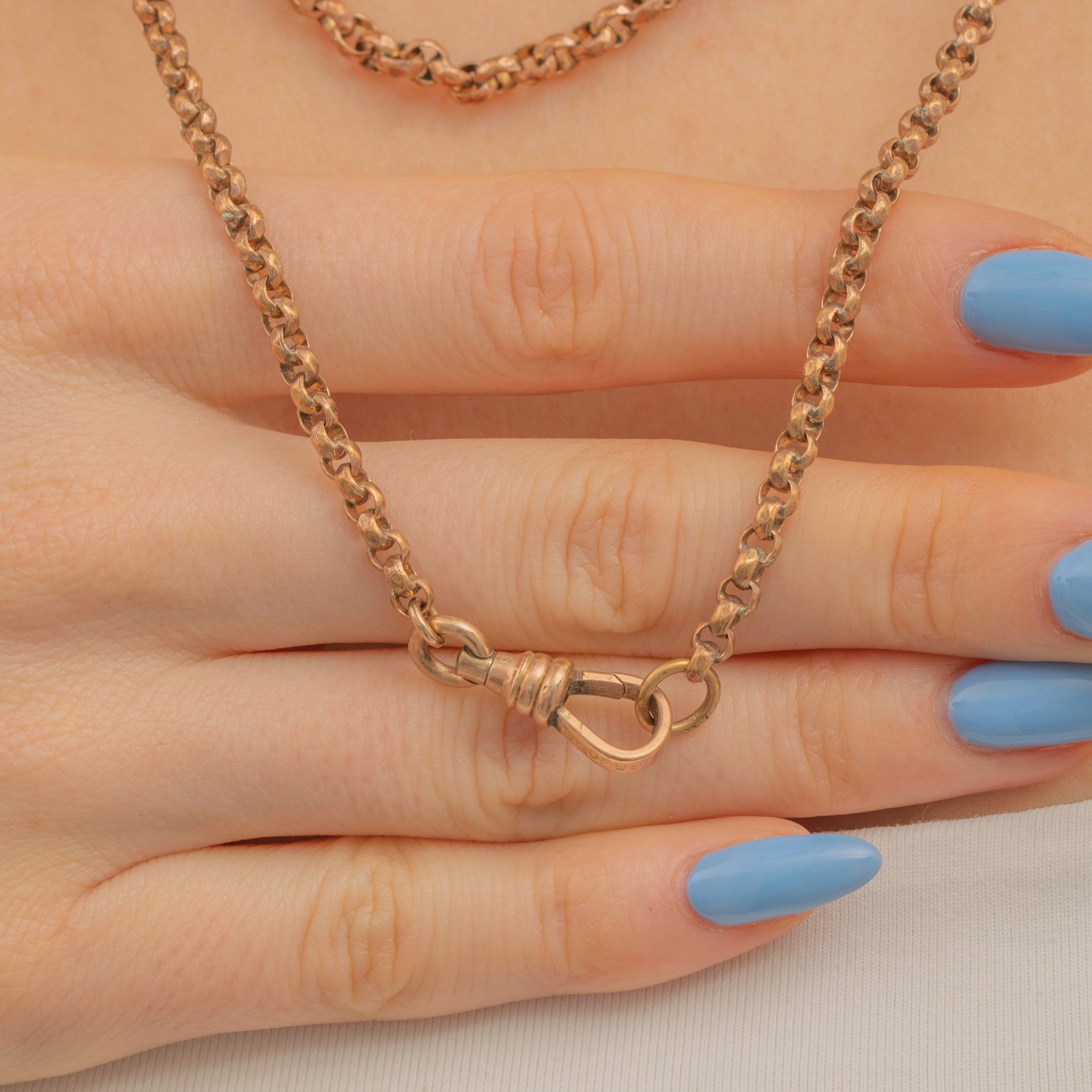 Cased with luscious 9ct Gold, this Victorian chain measures an impressive 27.5" in length, and can easily be looped for a layered look. She is complete with a lovely dog-clip - a highly sought-after feature that adds to her antique charm.