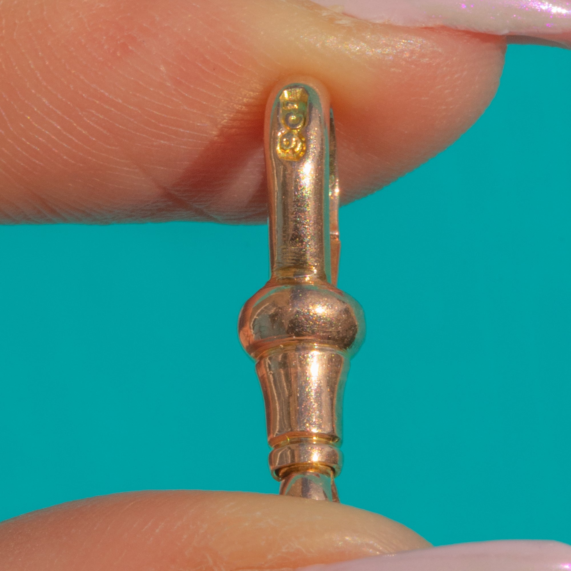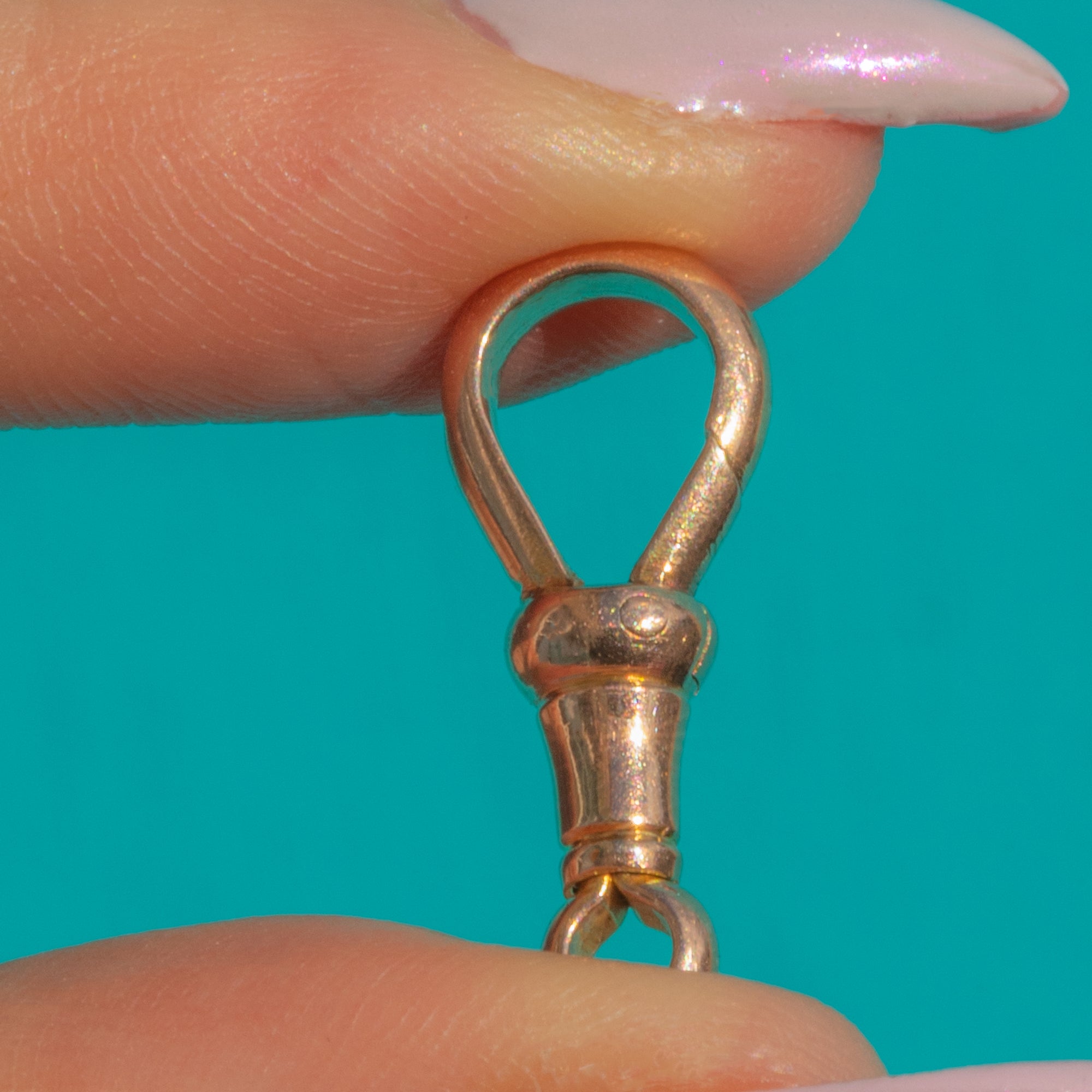 This authentic Victorian dog clip is a timeless favourite, crafted in warm 9ct Gold and stamped “9CT”. With its classic fluted top and rounded lever clasp, it makes a beautiful pendant or charm connector. The design is solid and weighty for its size, ideal for adding a touch of antique charm to any chain or charm stack.