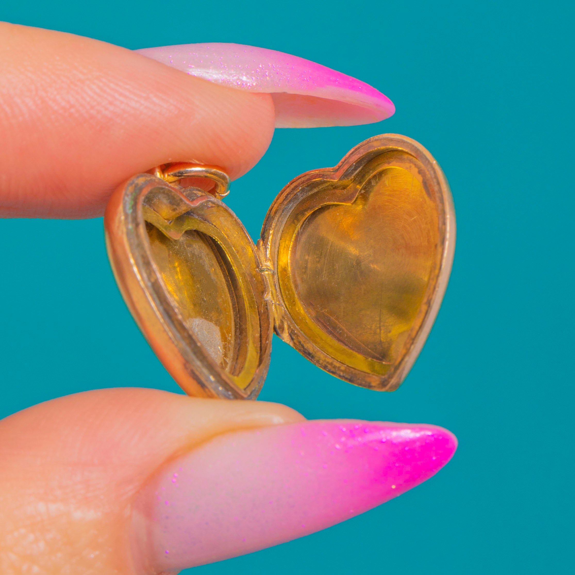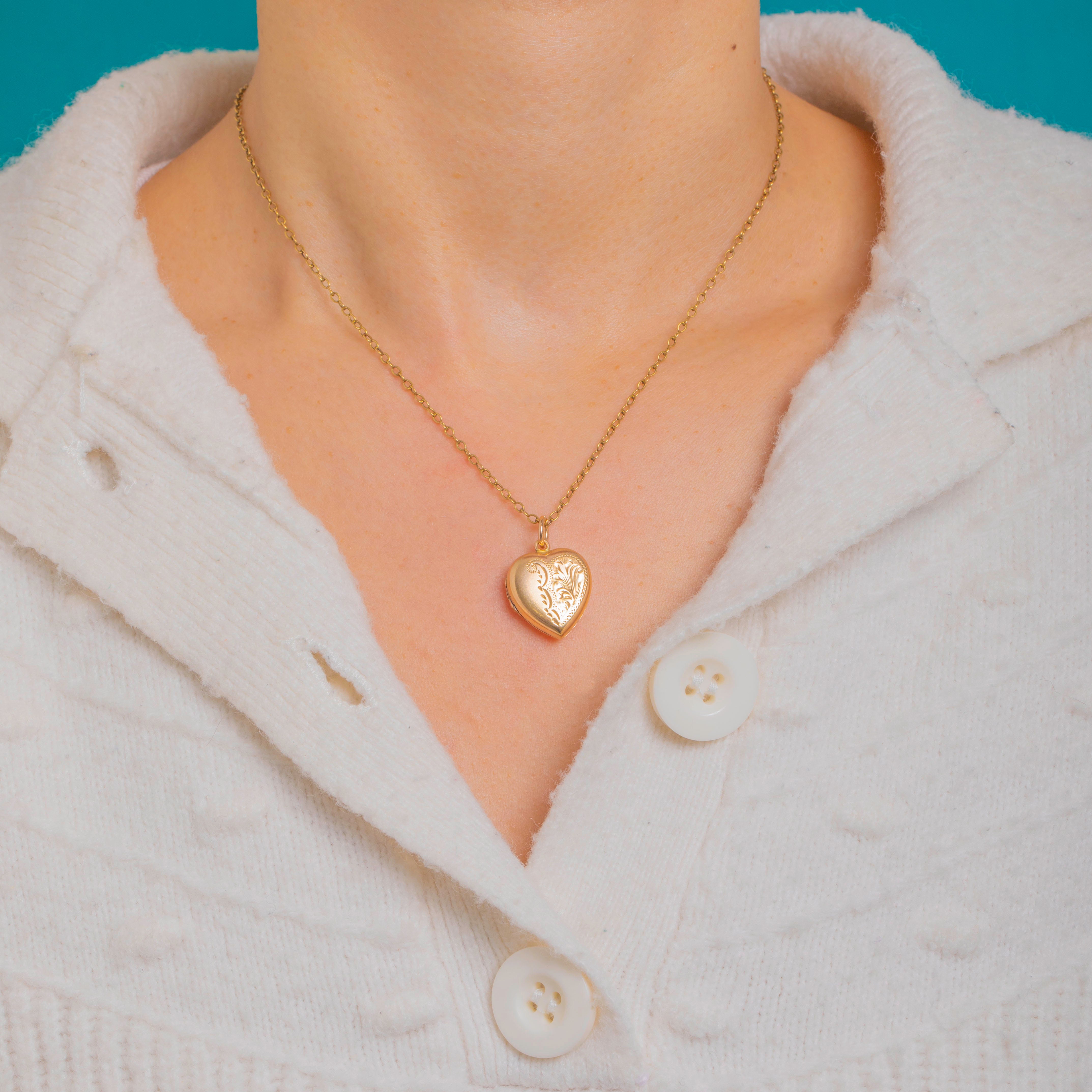 A darling Victorian puffy heart locket, finely engraved with bright‑cut foliate scrolls framed by a scalloped, beaded inner border. Crafted in 9ct Gold back and front, its warm glow and crisp detailing capture that timeless, romantic allure we love in antique keepsakes.