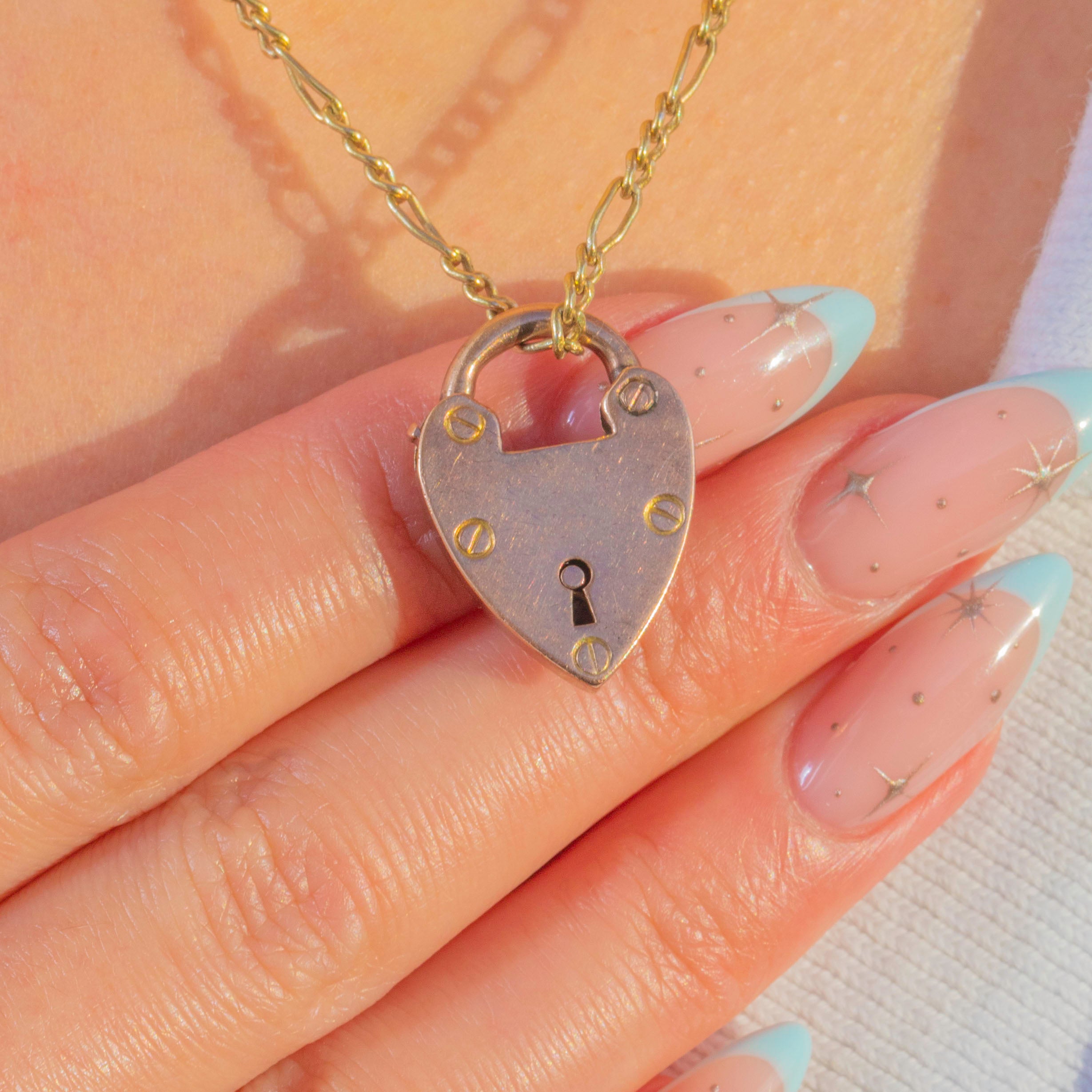 The rounded hinged hasp and neat side push release speak to the iconic padlock form, making it beautiful worn as a pendant while retaining its functional charm.