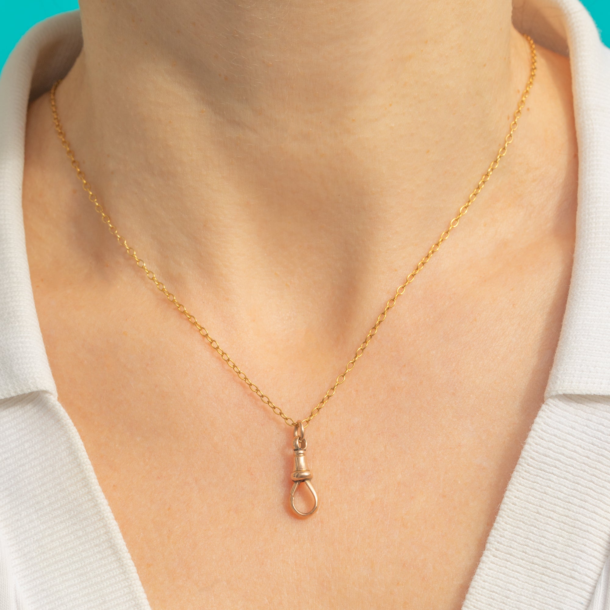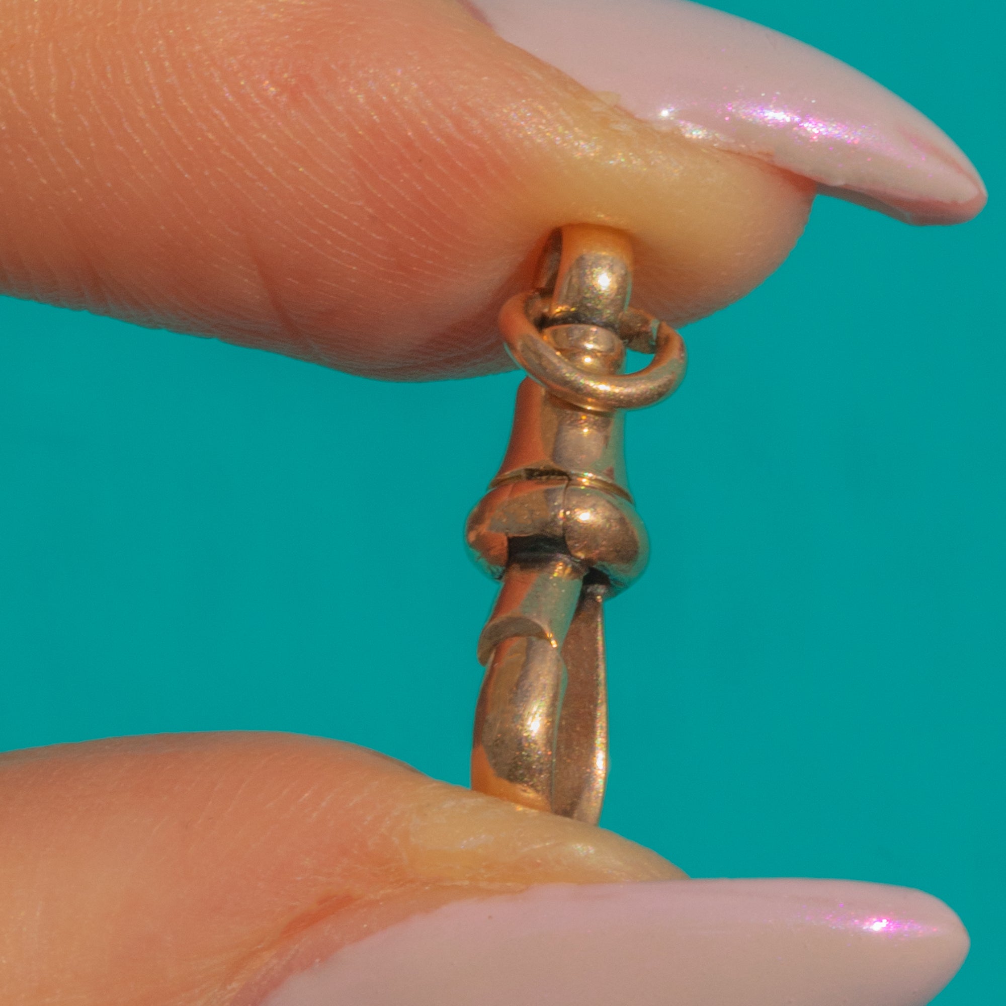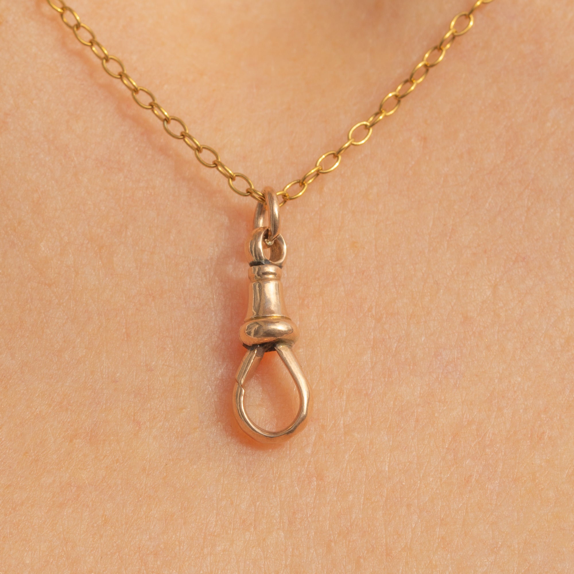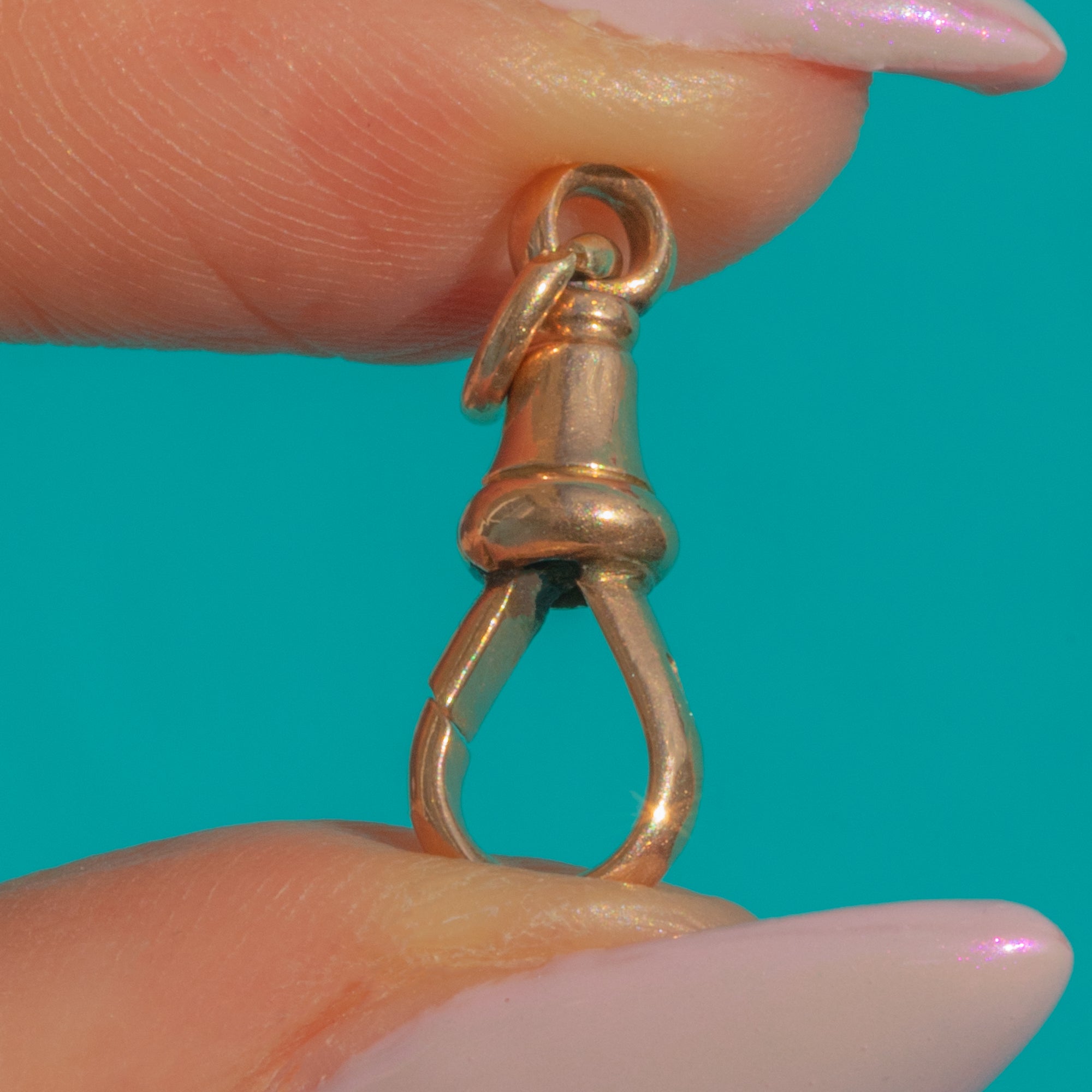 This petite Victorian dog clip makes a sleek, authentic accent for any chain or charm stack. Crafted in 9ct Gold with a softly faceted body and neat bell top, it’s the real deal, stamped “9C” and works as a functional clasp or as a minimalist pendant in its own right.