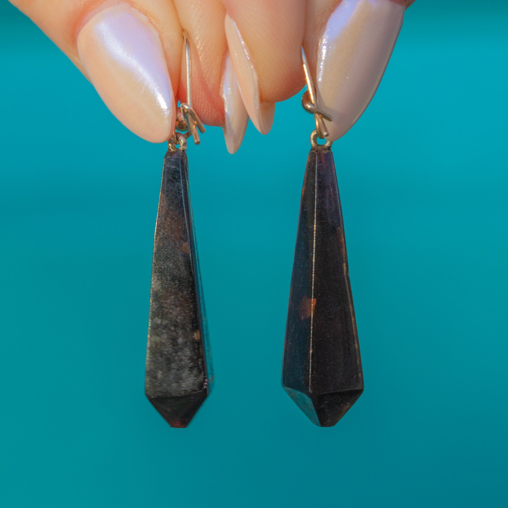 VERY GOOD. These Victorian 9ct Gold Pique floral drop earrings are in lovely condition. The Pique drops have been expertly cut and are free from wear to their surfaces. The Gold inlay is mostly intact with only some minor wear, which is impressive when considering their grand age! The later added hooks are slender making these antique Pique earrings comfortable to wear.