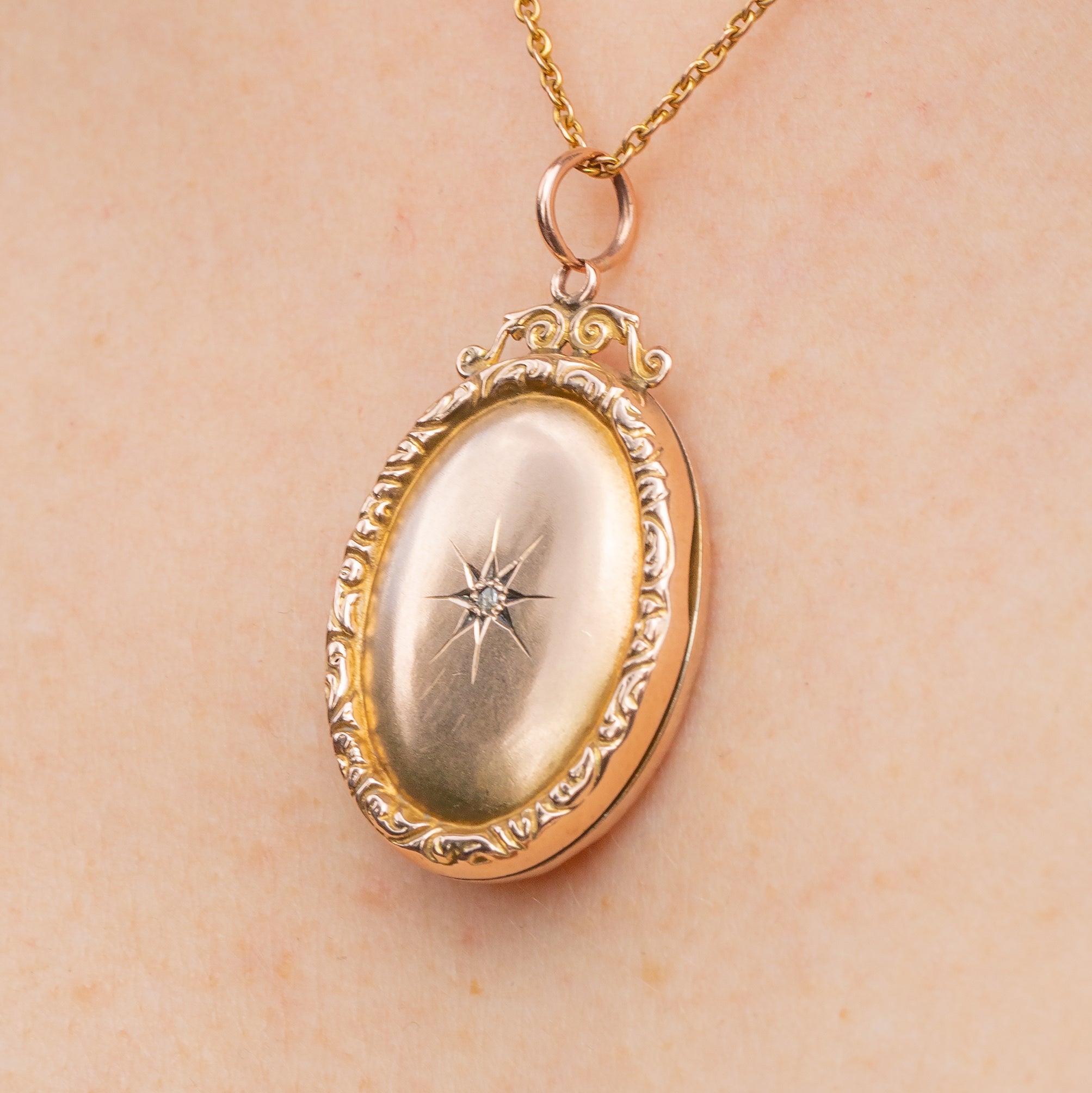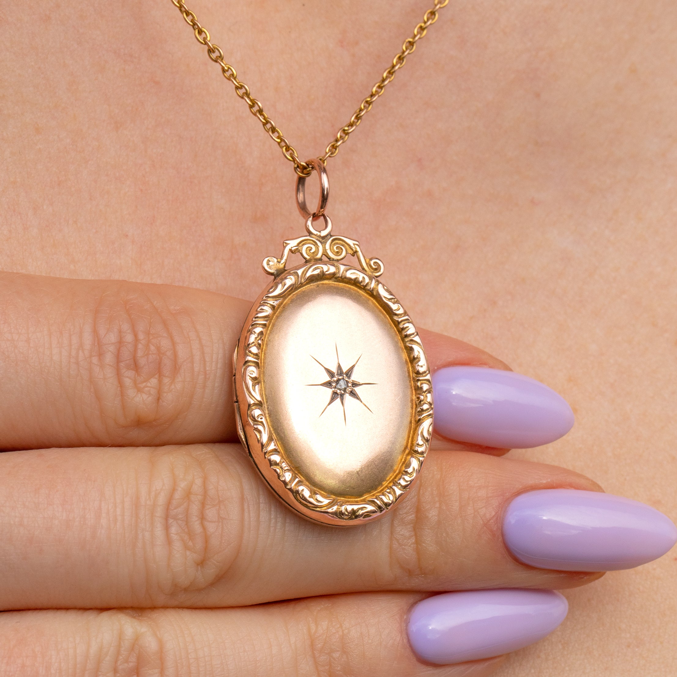 Victorian 9ct Gold Star-Set Diamond Locket