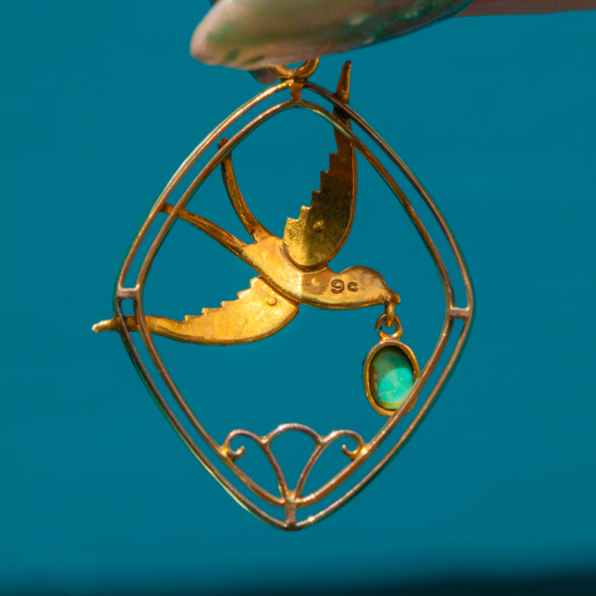 Victorian 9ct Gold Swallow Pendant, Turquoise & Pearl