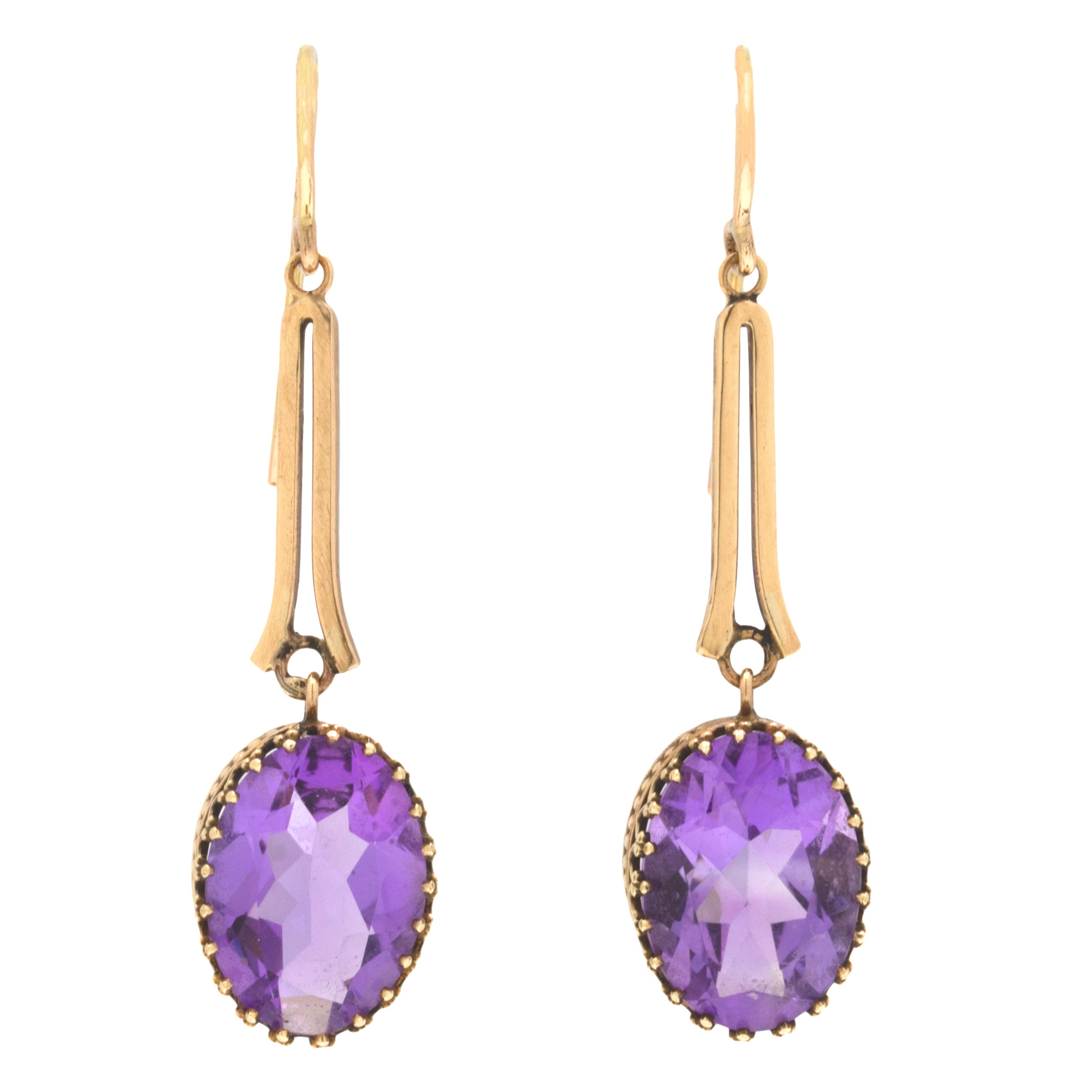 Enjoy the calming presence of these Victorian Amethyst drop earrings! Crafted from sumptuous 9ct Gold, this pretty pair flaunts two Amethyst drops that beautifully frame the face, totalling 9.00ct.