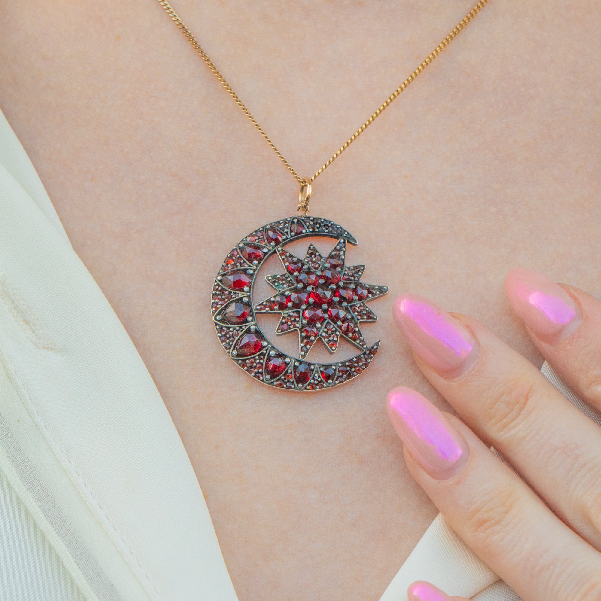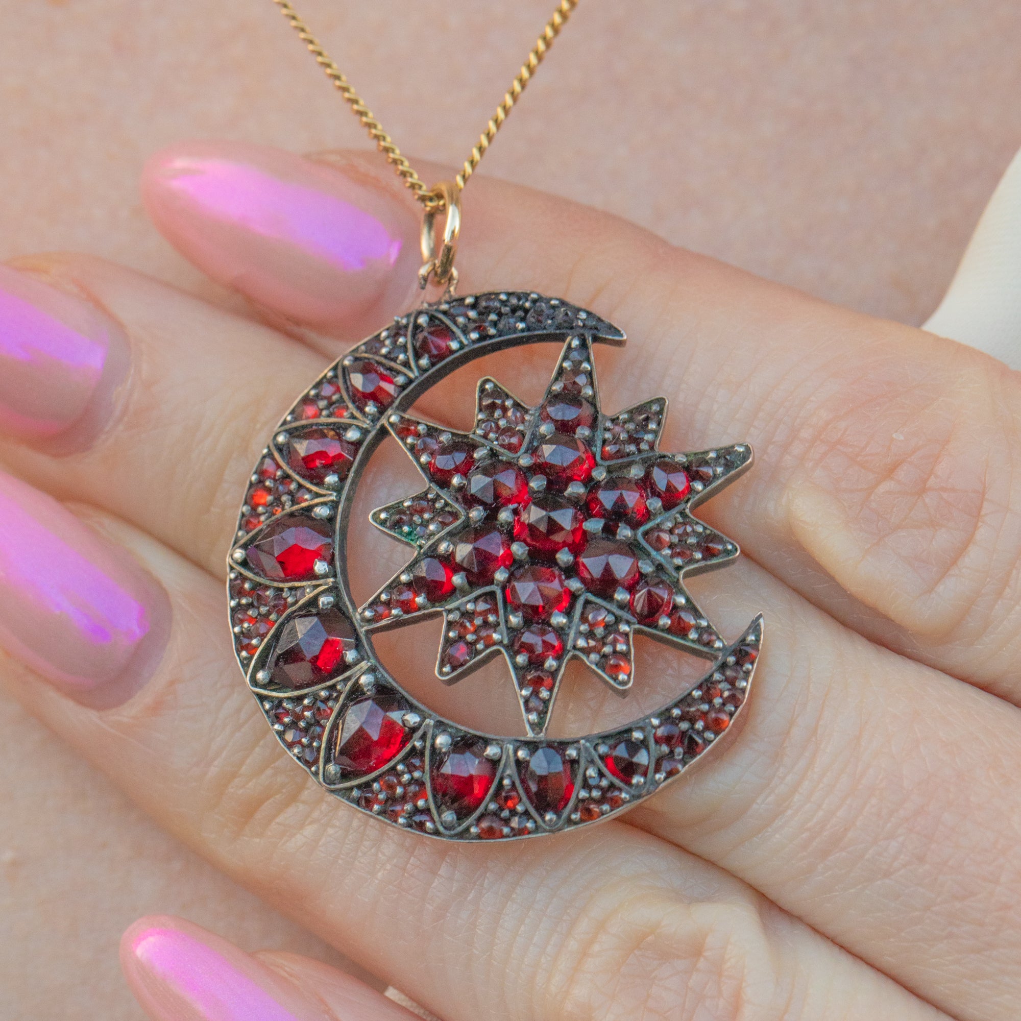Victorian Bohemian Garnet Crescent Moon & Star Pendant
