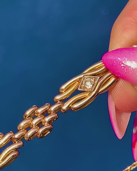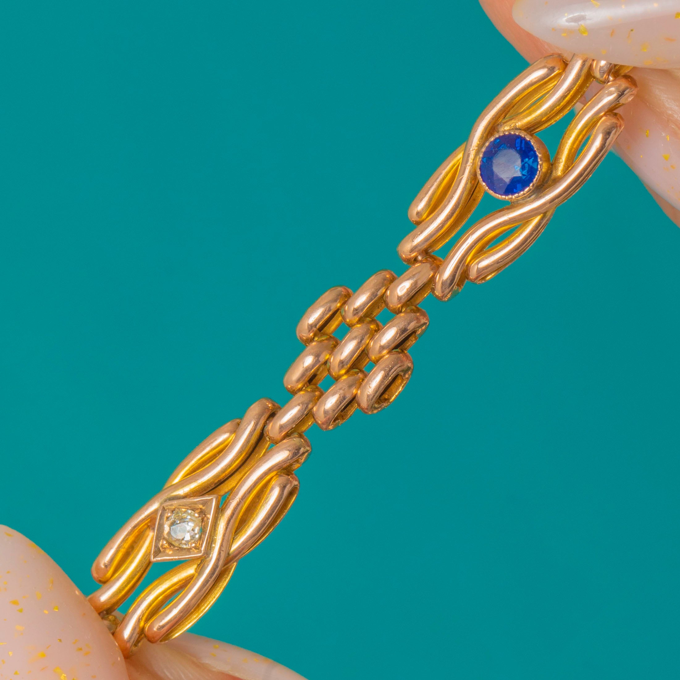 Antique Victorian 9ct Gold Diamond & Natural Sapphire Bracelet