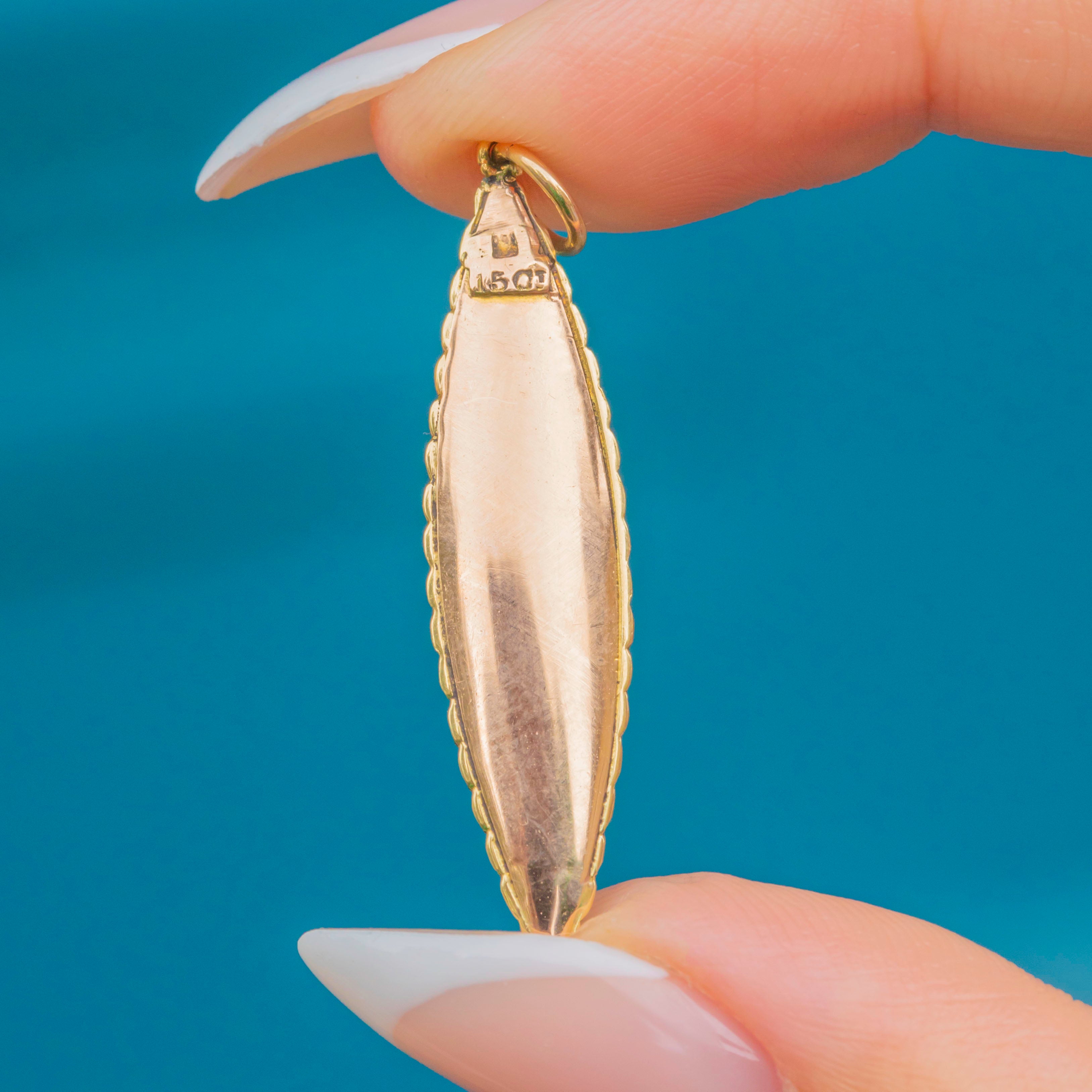 Victorian Enamel 15ct Gold Navette Hair Locket Charm, c.1900 (2.5g)