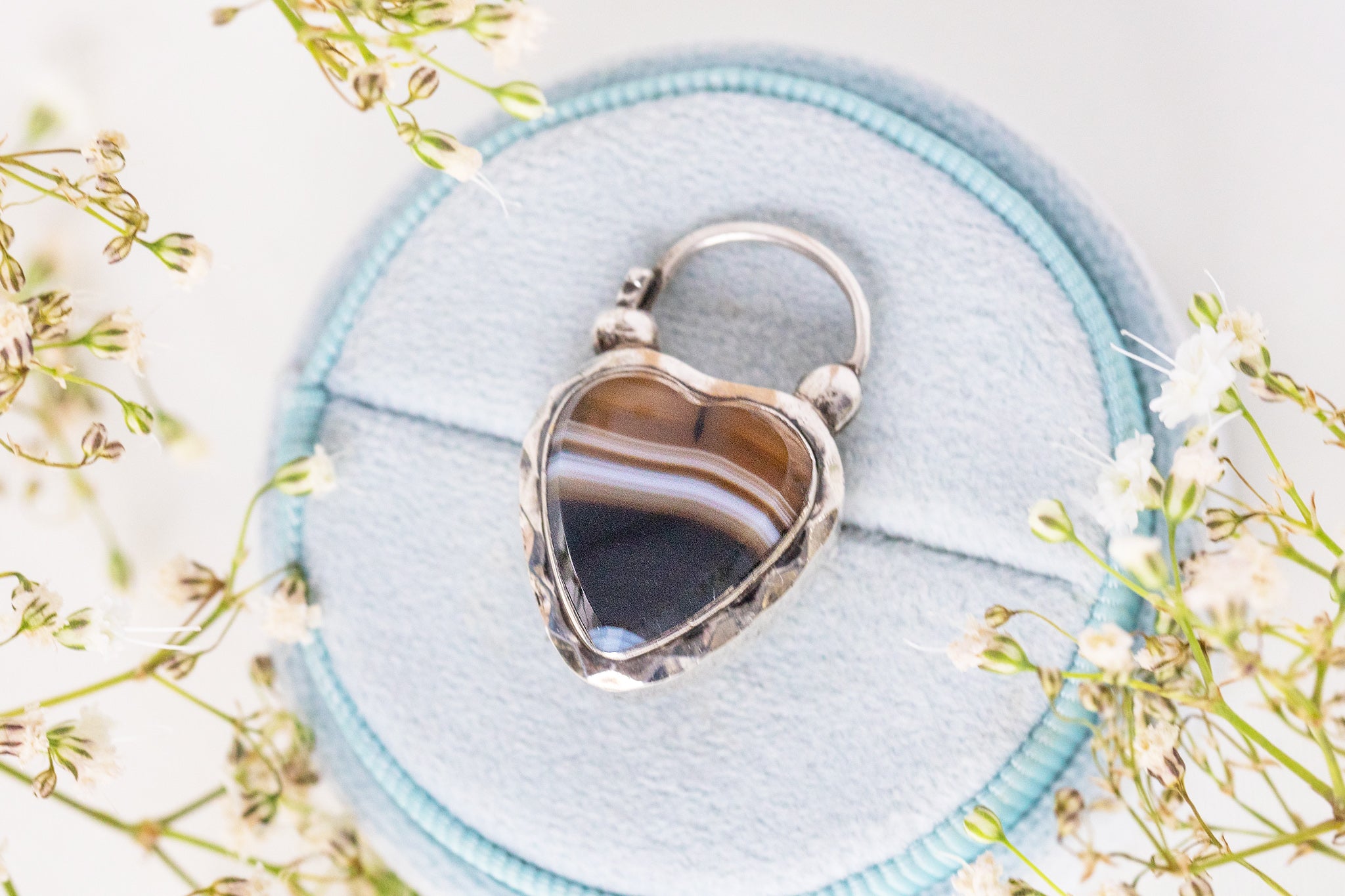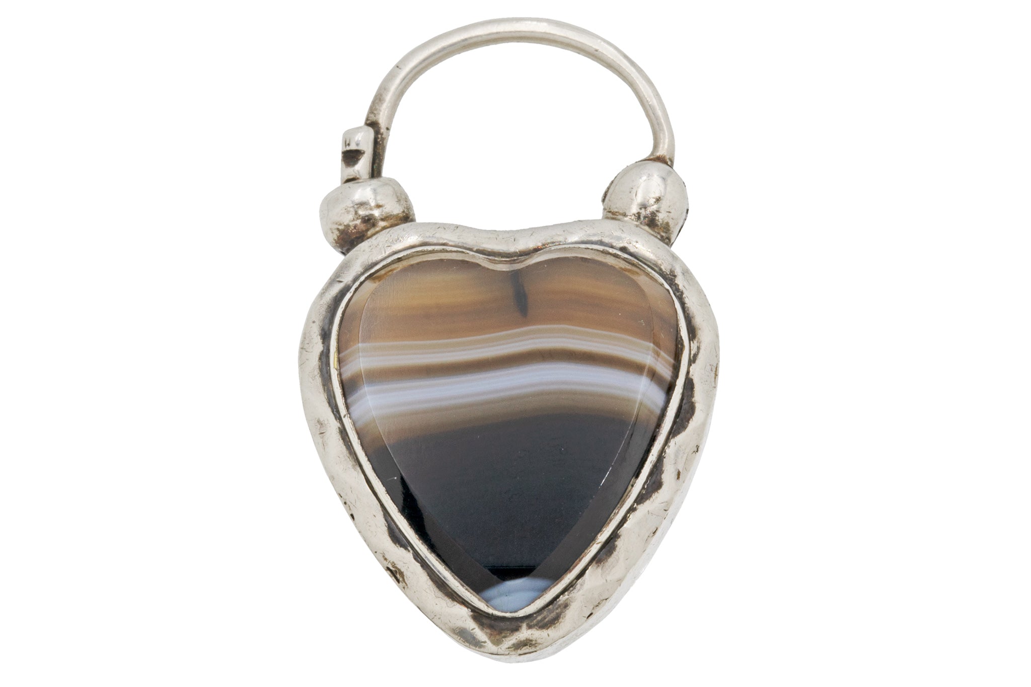 Show how much you love someone with this Victorian Silver Agate heart padlock! Faceted Sterling Silver borders a smooth Agate, inlaid with streaks of muted tones.