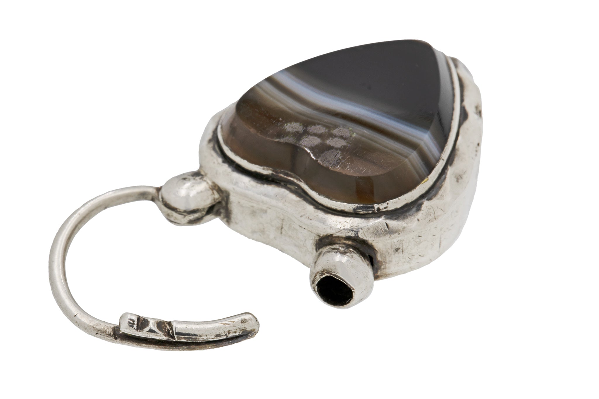 VERY GOOD. This Victorian Silver Agate heart padlock is in very good condition! The Agate is secure within its setting, with no chips to note. The Silver has some wear to the sides and back but this does not affect her overall antique beauty. The glass frame at the back does not come out but she is a beautiful feature of the padlock. The padlock hasp is in full working order, with endless opportunities for how to style her!