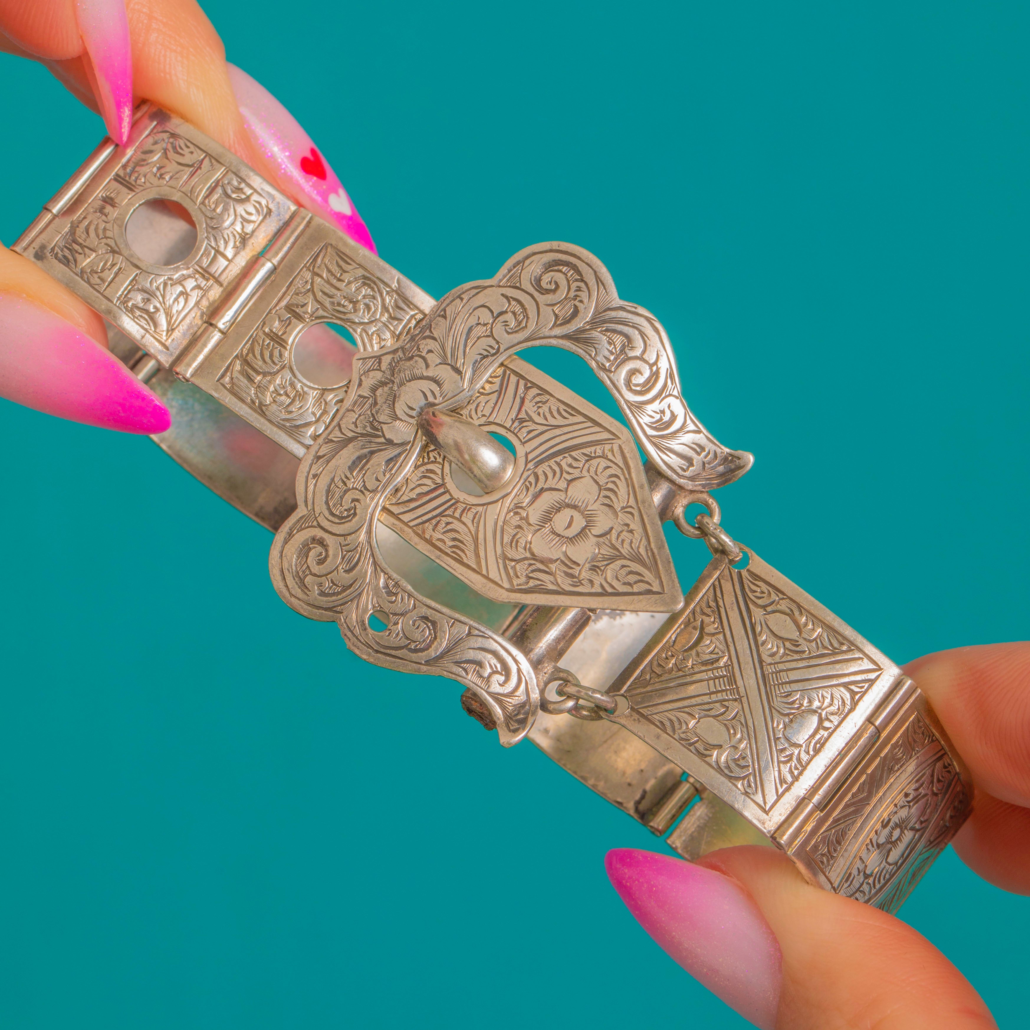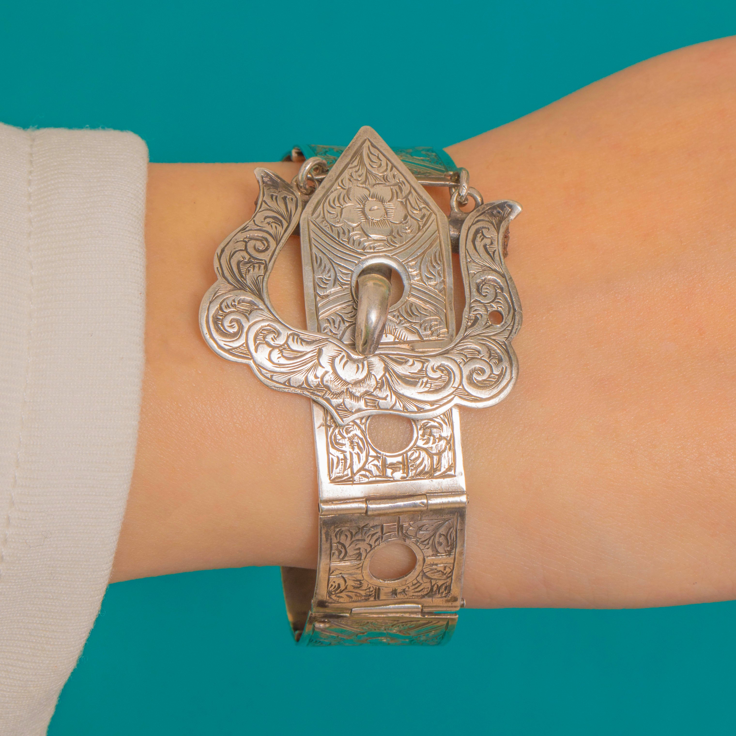 Victorian Silver Engraved Buckle Bracelet c.1856