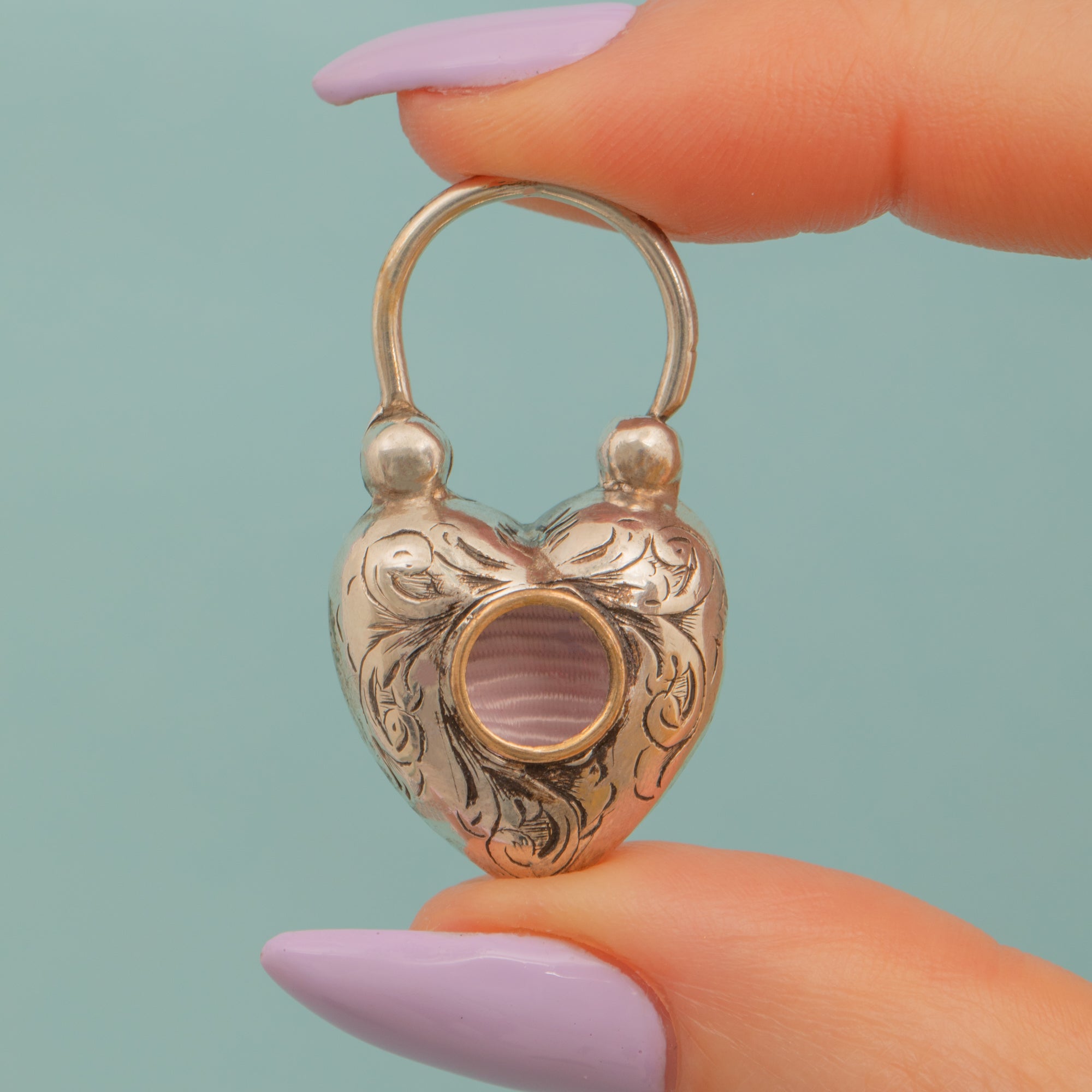 This sweet Victorian Silver engraved puffy heart padlock pendant will make a lovely addition to your collection! Beautifully designed, this puffy padlock has been engraved on both its front and back, with a secret locket compartment that is only revealed once you turn it around!