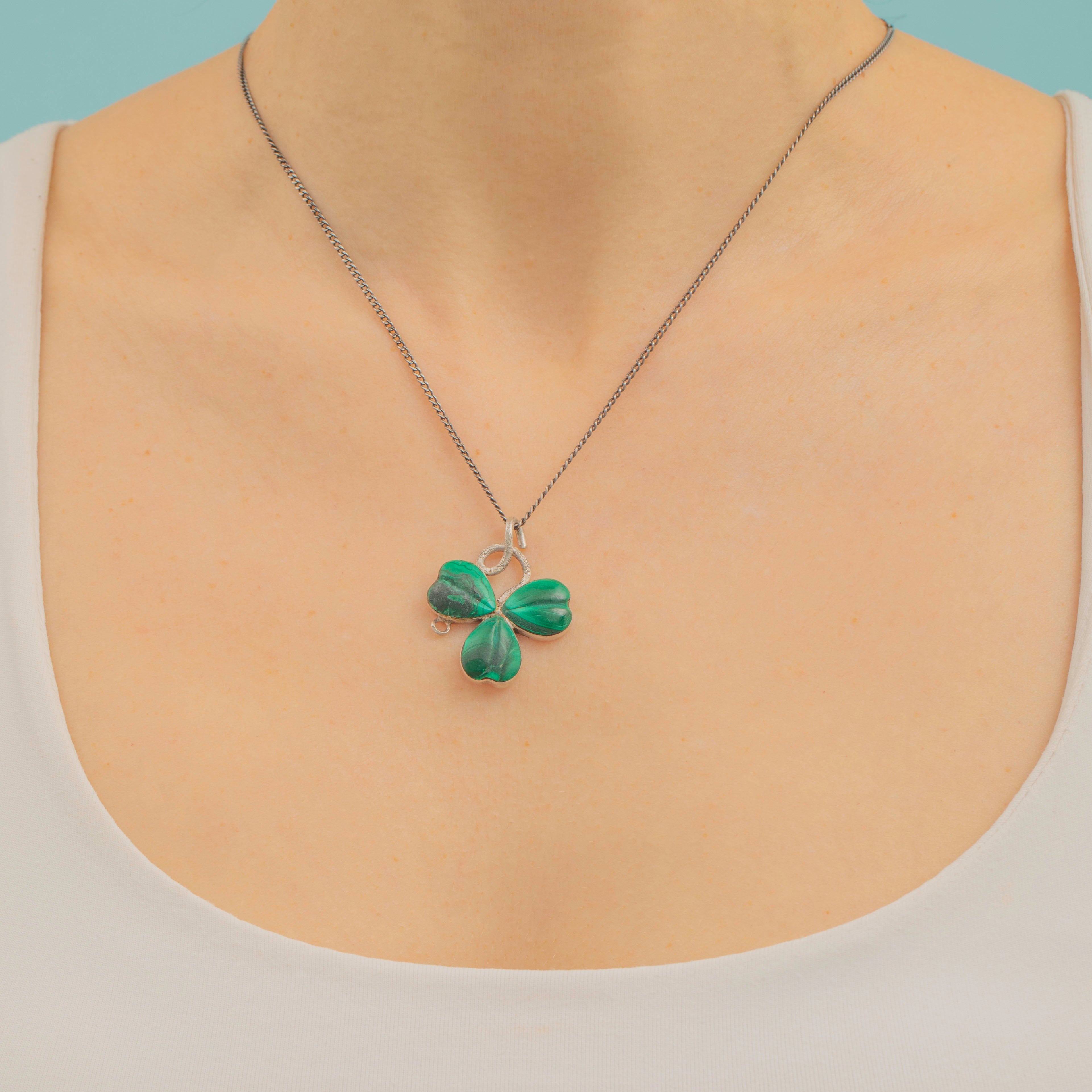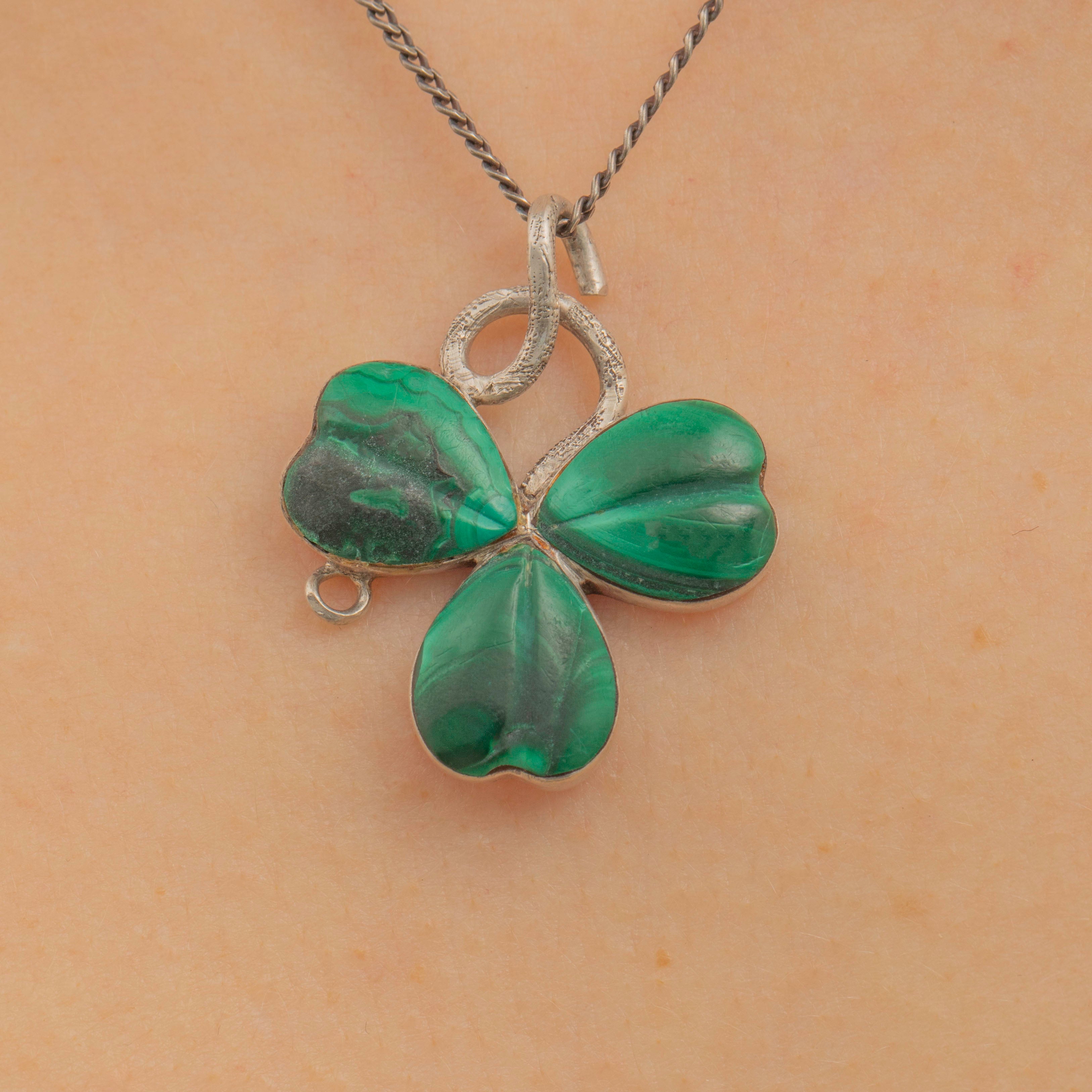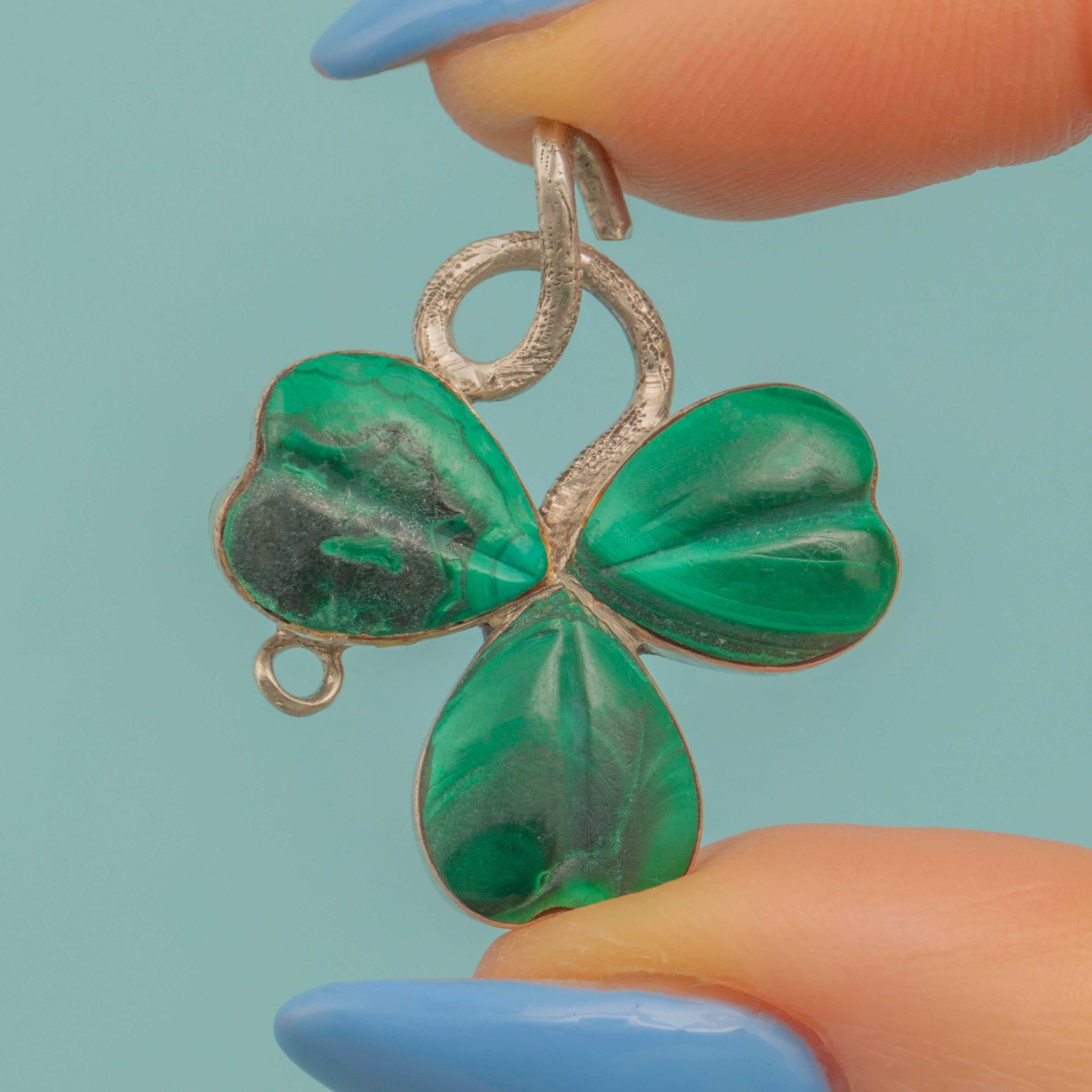 Victorian Silver Malachite Clover Pendant