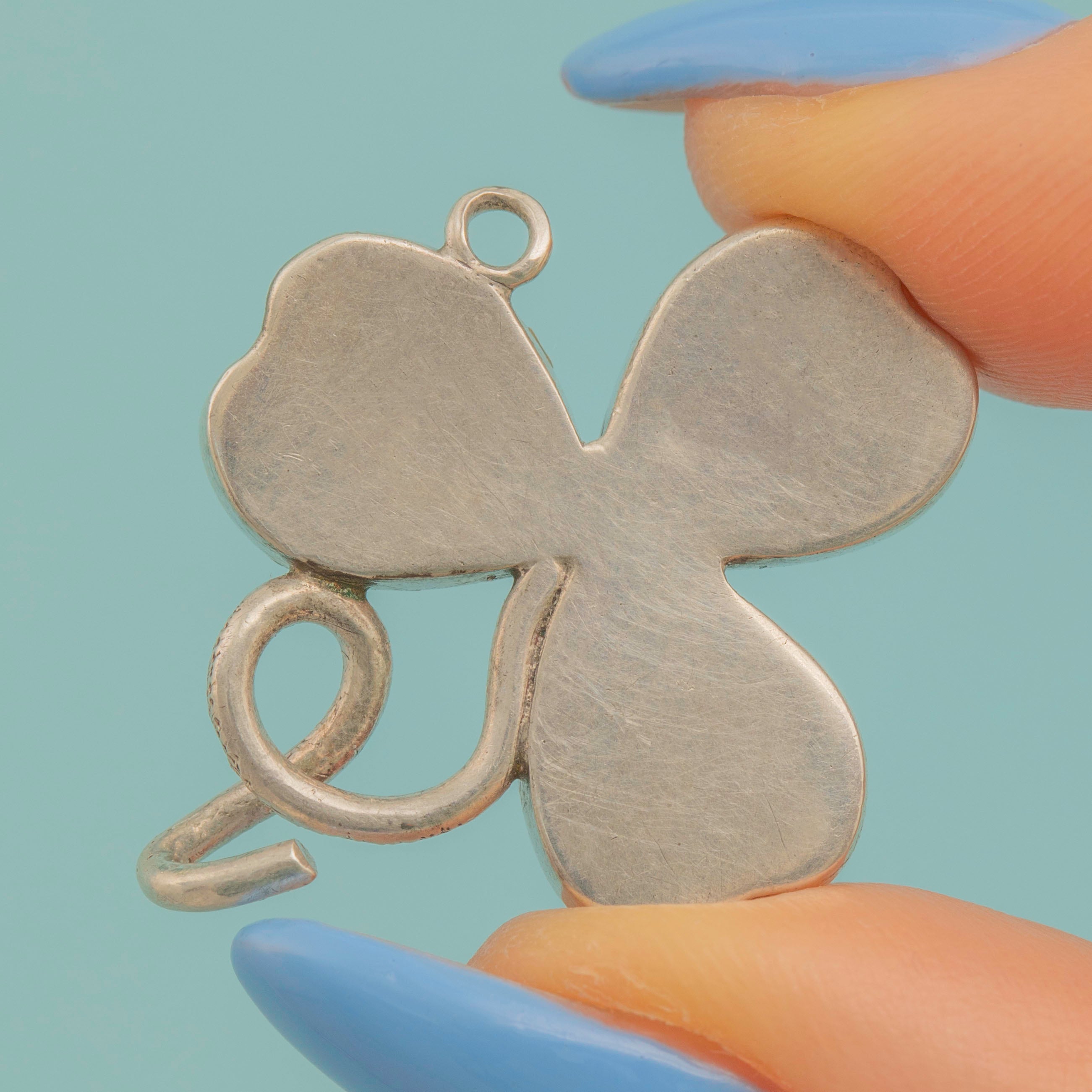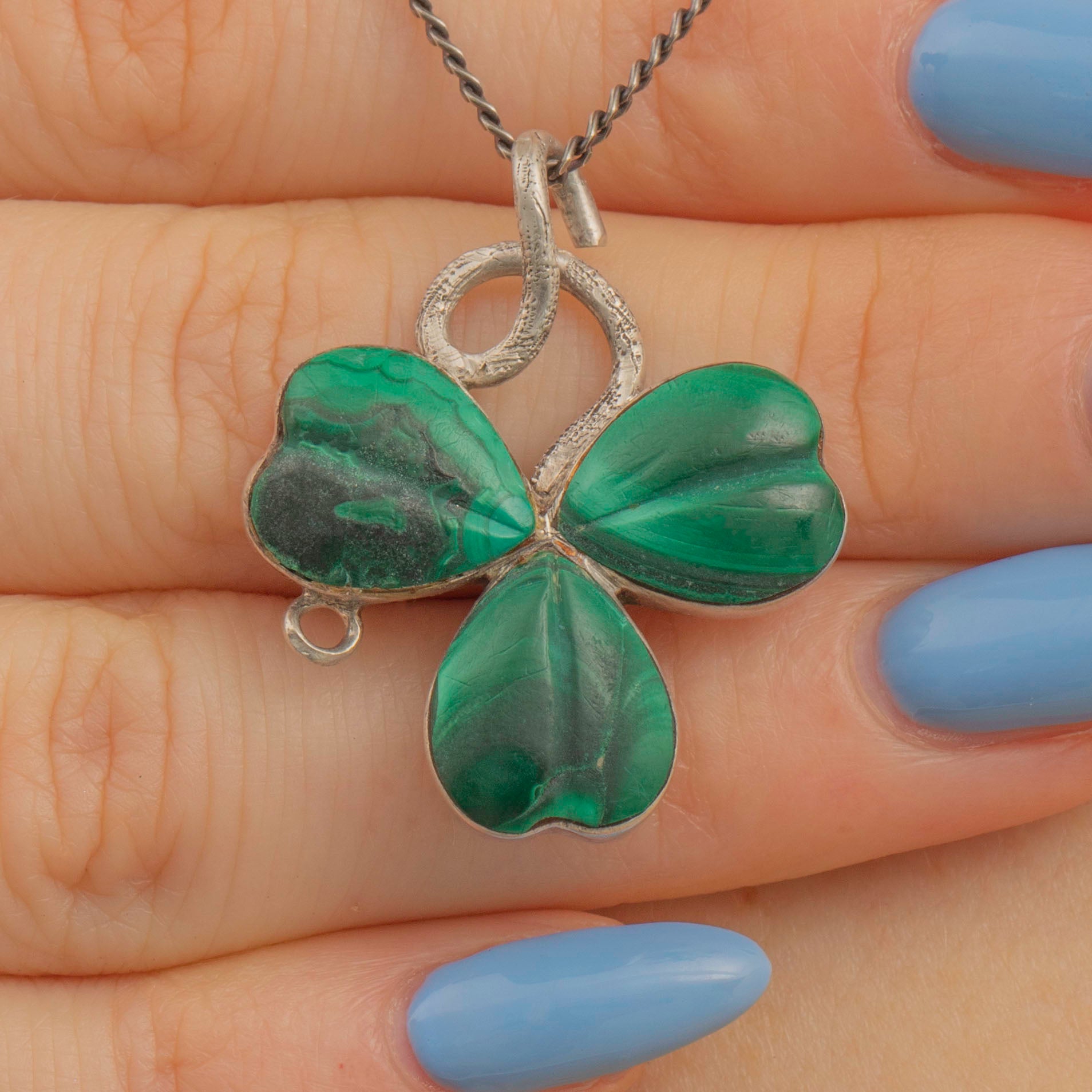 We adore this sweet Victorian Silver Malachite clover pendant! Inlaid with marvellously marbled Malachite, the shamrock sits snug within a chunky Sterling Silver bezel.